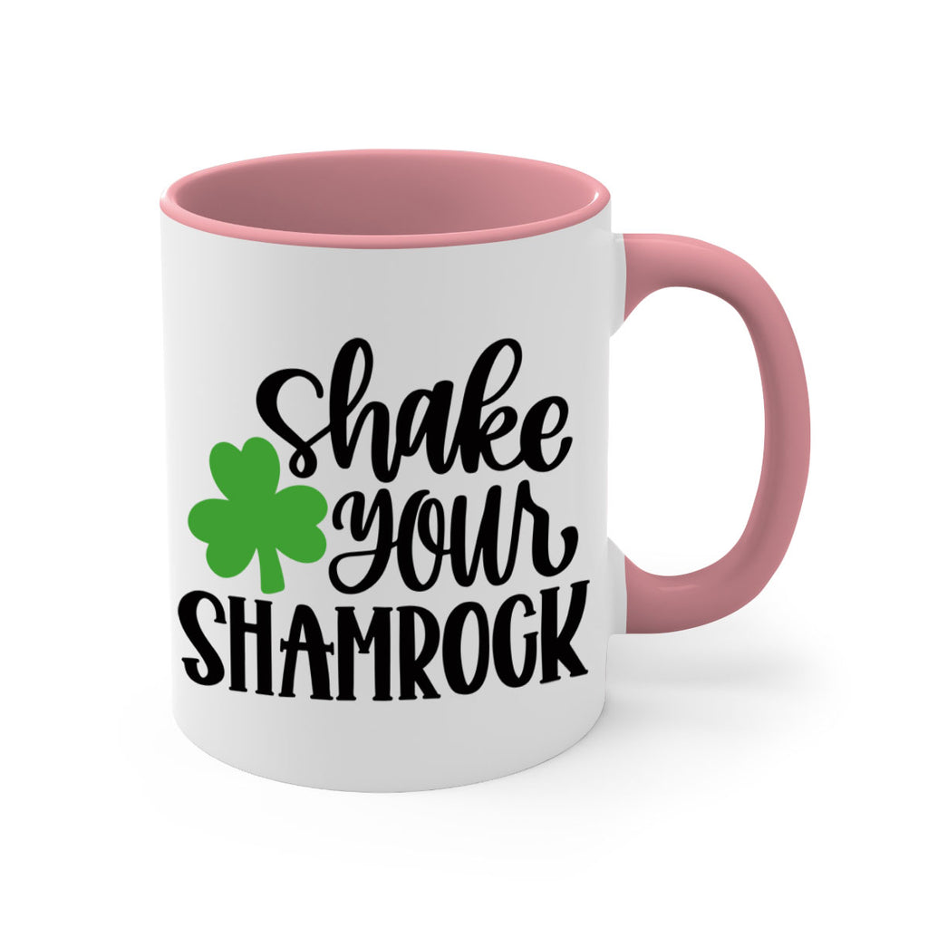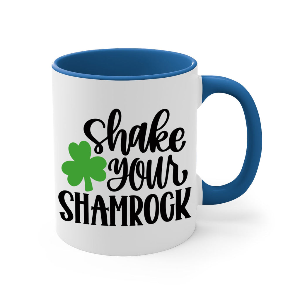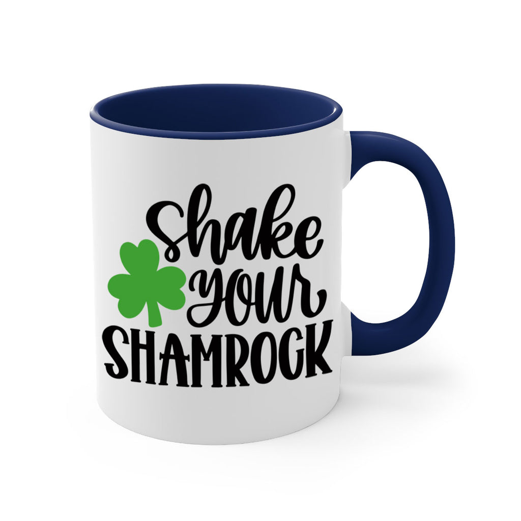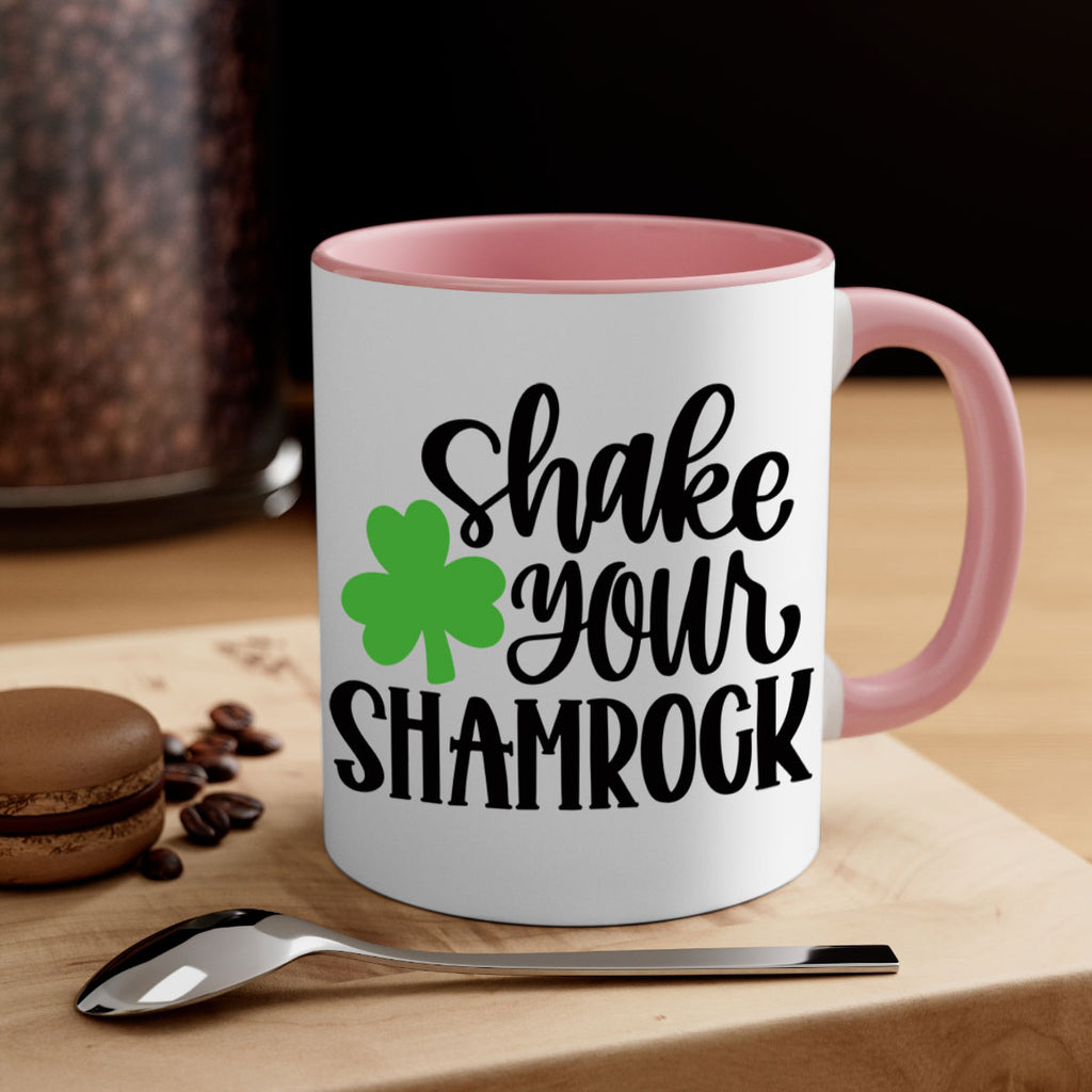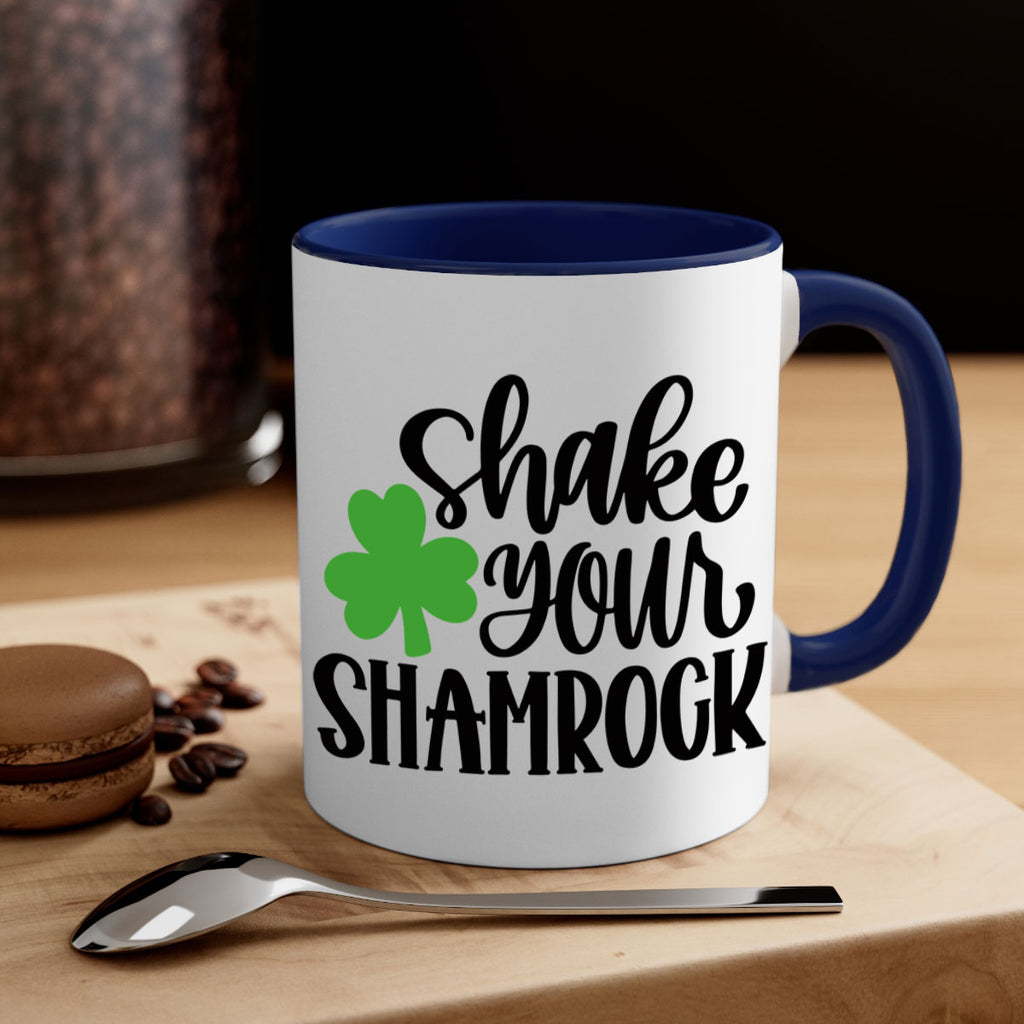 Enjoy the Shake Your Shamrock Style 33# Mug . Here to bring big gulps of coffee, Tea or any beverage and style, these two-tone coffee mugs help people around the world start the day just right. Choose between 5 different color options and 2 sizes to best complement the design. Each mug comes with a colored handle, a colored interior, and a classy, glossy finish so that your mugs become an instant favorite.