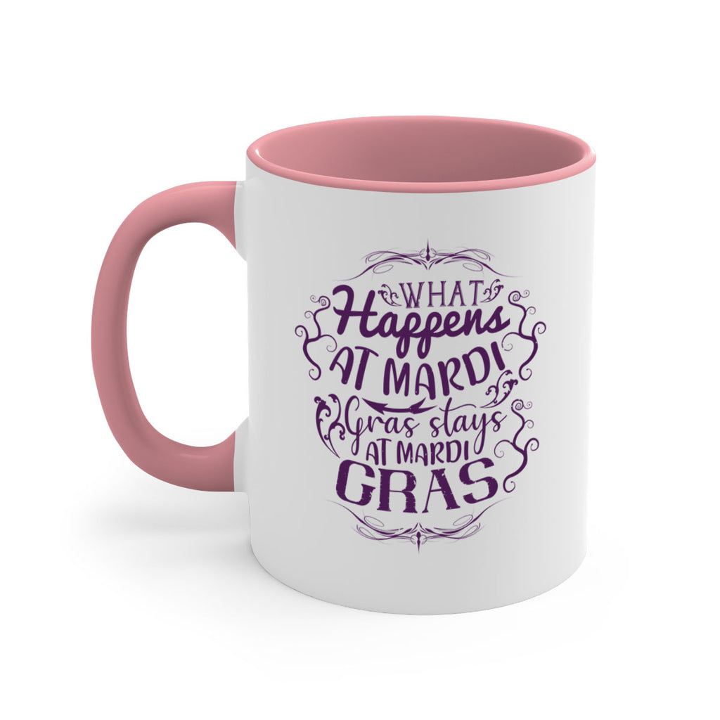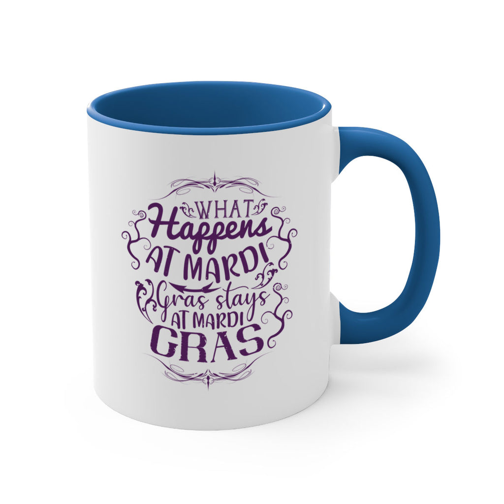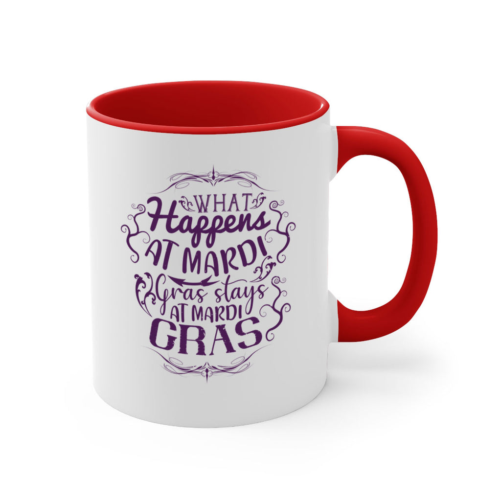 Enjoy the what happens at mardi gras stays at mardi gras 31# Mug . Here to bring big gulps of coffee, Tea or any beverage and style, these two-tone coffee mugs help people around the world start the day just right. Choose between 5 different color options and 2 sizes to best complement the design. Each mug comes with a colored handle, a colored interior, and a classy, glossy finish so that your mugs become an instant favorite.