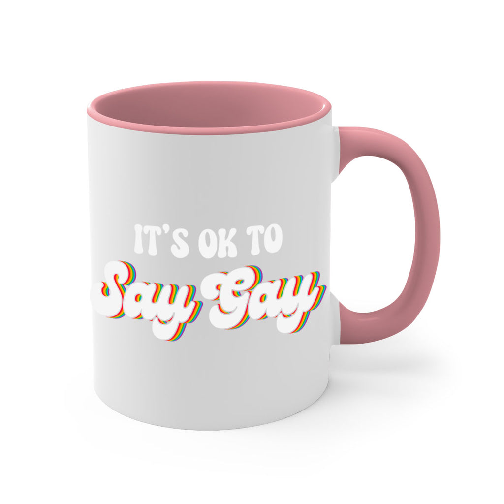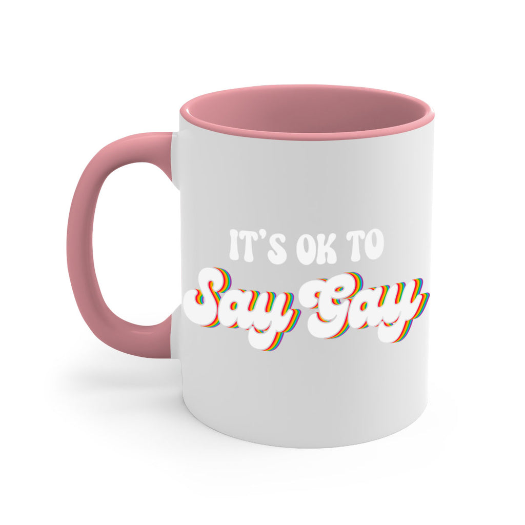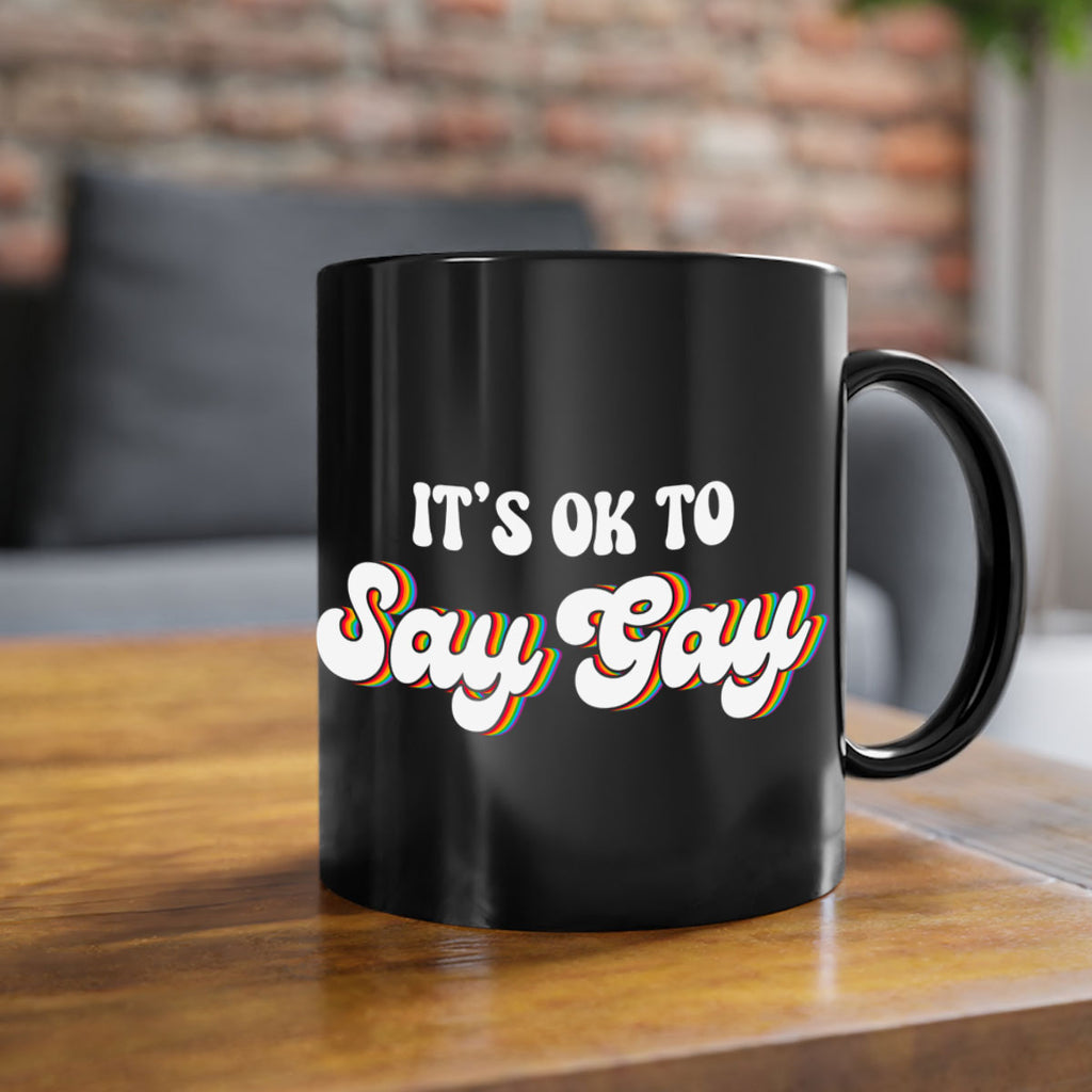 Enjoy the its okay to say gay lgbt 113# Mug . Here to bring big gulps of coffee, Tea or any beverage and style, these two-tone coffee mugs help people around the world start the day just right. Choose between 5 different color options and 2 sizes to best complement the design. Each mug comes with a colored handle, a colored interior, and a classy, glossy finish so that your mugs become an instant favorite.