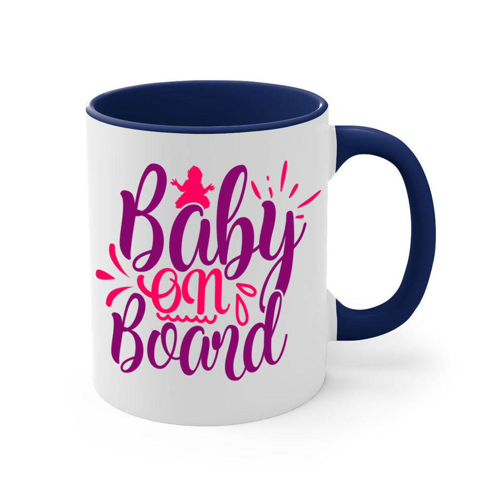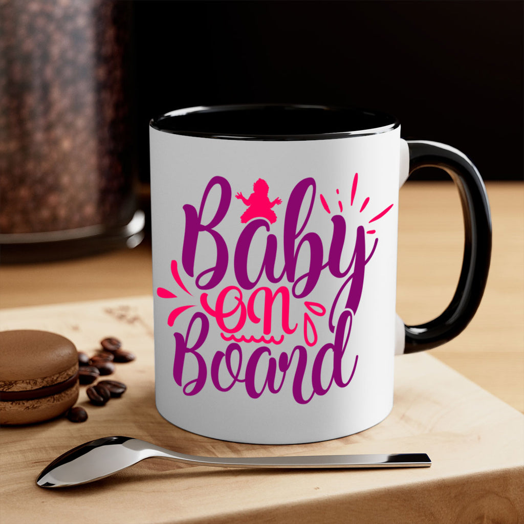Enjoy the Baby On Board Style 289# Mug . Here to bring big gulps of coffee, Tea or any beverage and style, these two-tone coffee mugs help people around the world start the day just right. Choose between 5 different color options and 2 sizes to best complement the design. Each mug comes with a colored handle, a colored interior, and a classy, glossy finish so that your mugs become an instant favorite.