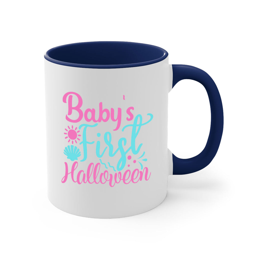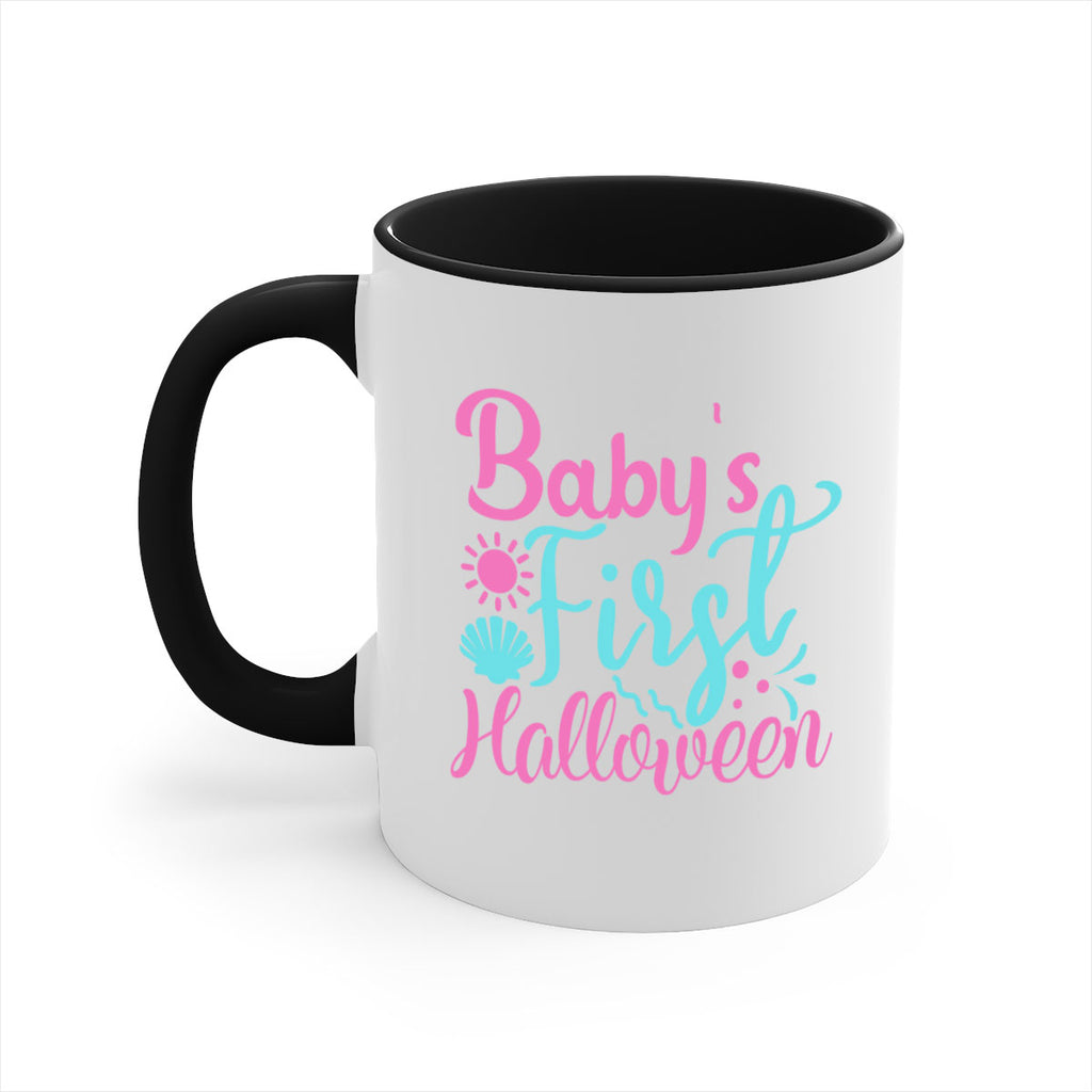 Enjoy the babys first halloween Style 283# Mug . Here to bring big gulps of coffee, Tea or any beverage and style, these two-tone coffee mugs help people around the world start the day just right. Choose between 5 different color options and 2 sizes to best complement the design. Each mug comes with a colored handle, a colored interior, and a classy, glossy finish so that your mugs become an instant favorite.