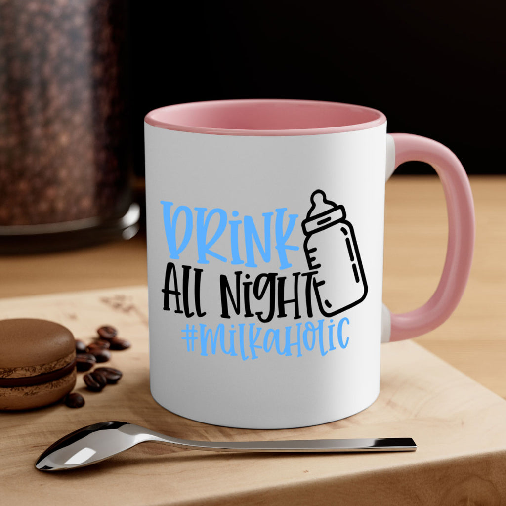 Enjoy the Drink All Night Milkaholic Style 99# Mug . Here to bring big gulps of coffee, Tea or any beverage and style, these two-tone coffee mugs help people around the world start the day just right. Choose between 5 different color options and 2 sizes to best complement the design. Each mug comes with a colored handle, a colored interior, and a classy, glossy finish so that your mugs become an instant favorite.