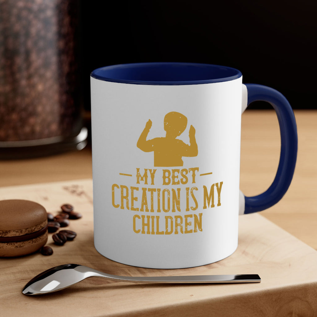 Enjoy the My best creation is my children Style 26# Mug . Here to bring big gulps of coffee, Tea or any beverage and style, these two-tone coffee mugs help people around the world start the day just right. Choose between 5 different color options and 2 sizes to best complement the design. Each mug comes with a colored handle, a colored interior, and a classy, glossy finish so that your mugs become an instant favorite.