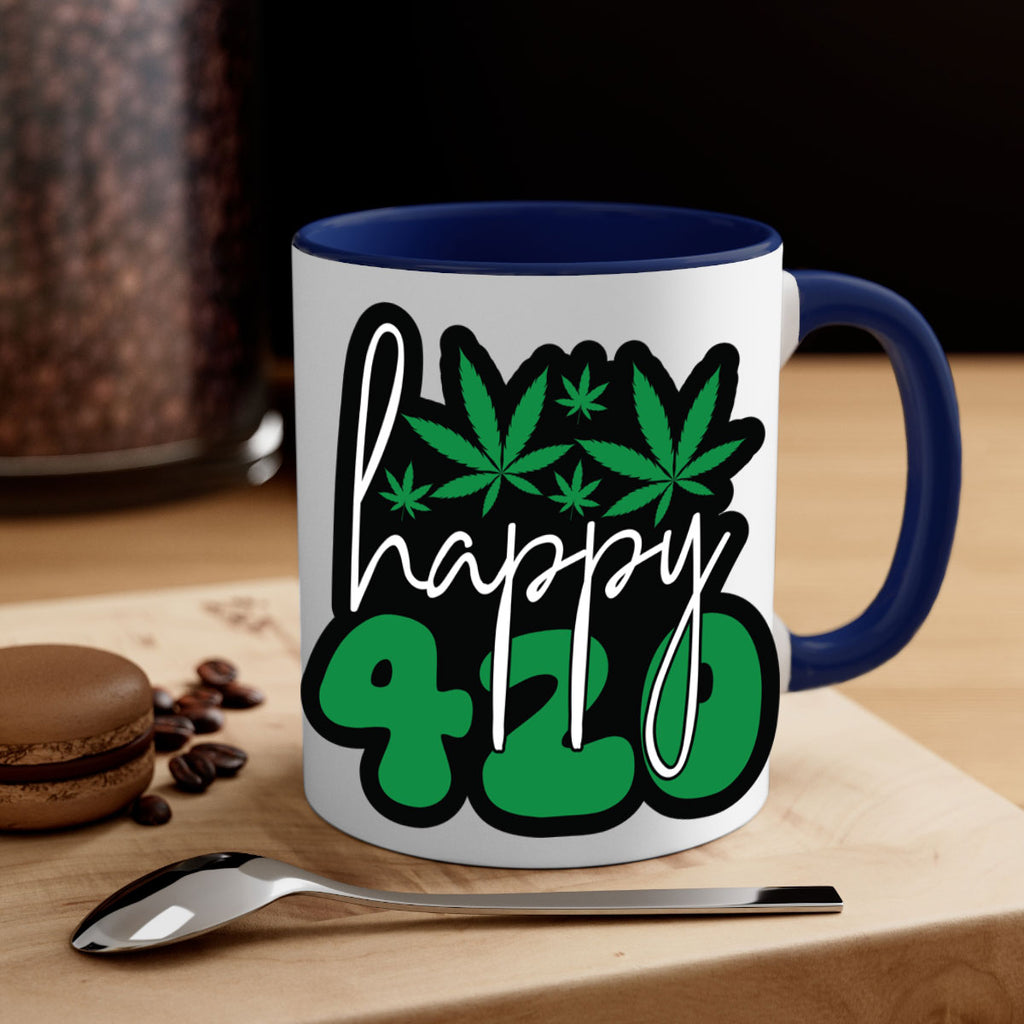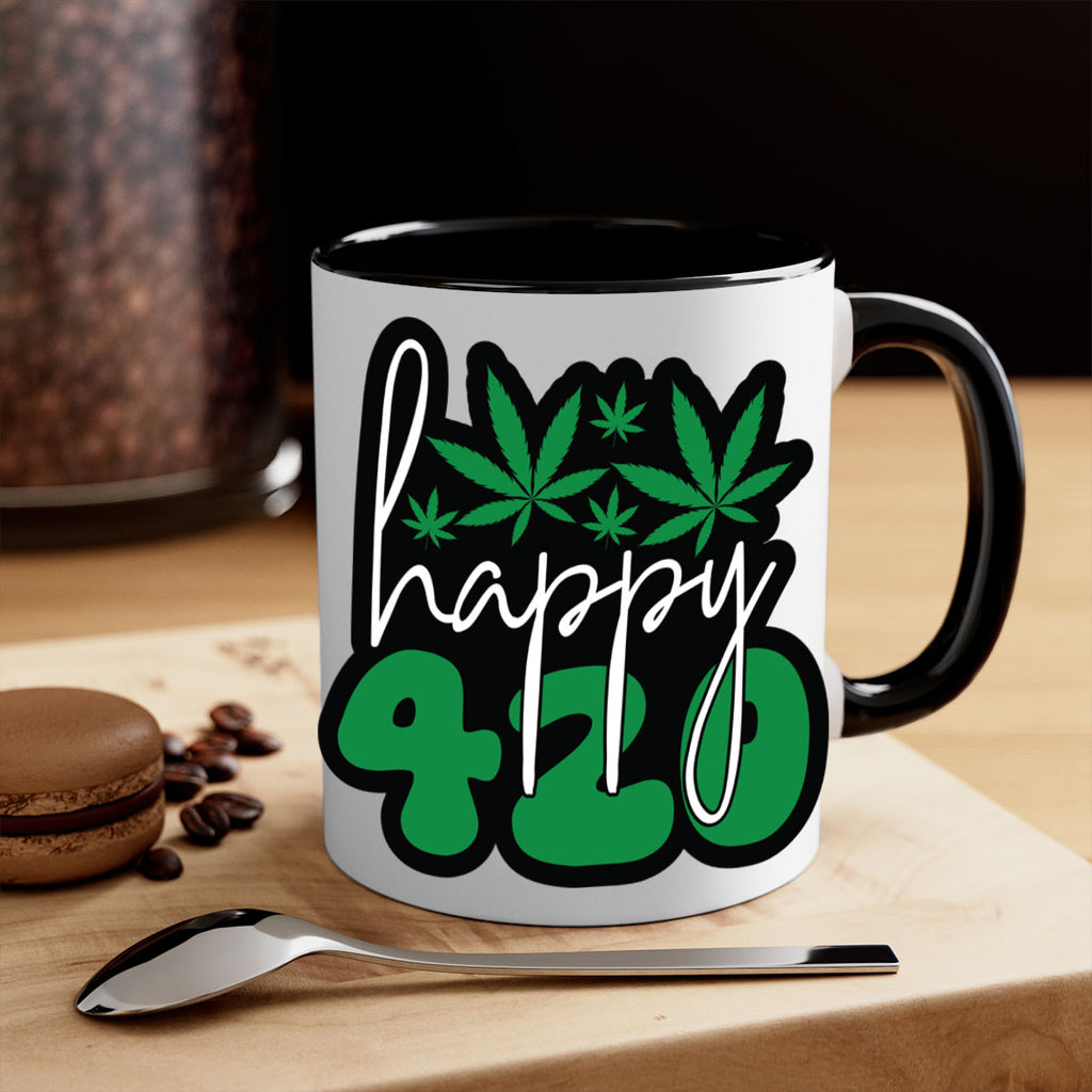 Enjoy the Happy 420 102# Mug . Here to bring big gulps of coffee, Tea or any beverage and style, these two-tone coffee mugs help people around the world start the day just right. Choose between 5 different color options and 2 sizes to best complement the design. Each mug comes with a colored handle, a colored interior, and a classy, glossy finish so that your mugs become an instant favorite.