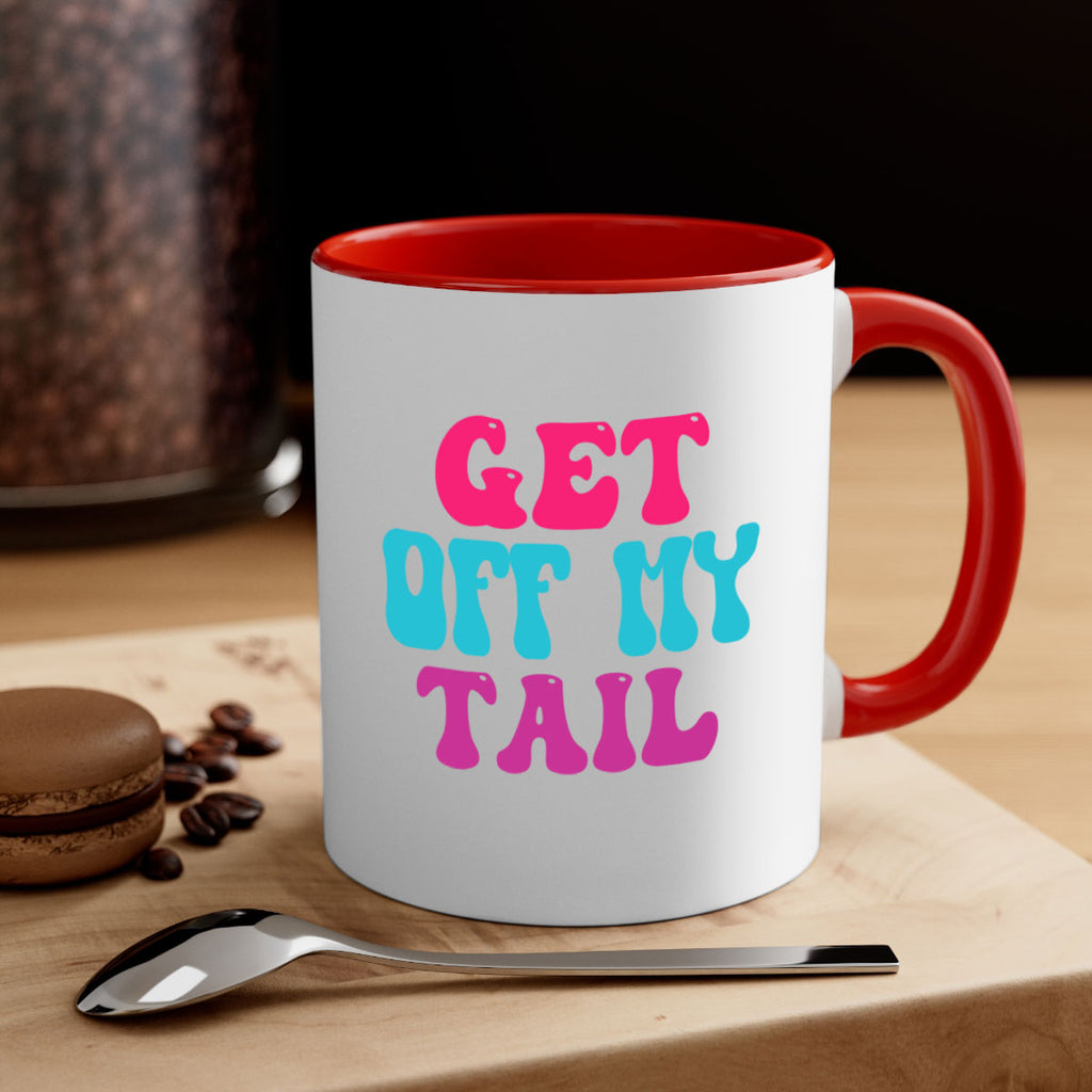 Enjoy the Get Off My Tail 167# Mug . Here to bring big gulps of coffee, Tea or any beverage and style, these two-tone coffee mugs help people around the world start the day just right. Choose between 5 different color options and 2 sizes to best complement the design. Each mug comes with a colored handle, a colored interior, and a classy, glossy finish so that your mugs become an instant favorite.