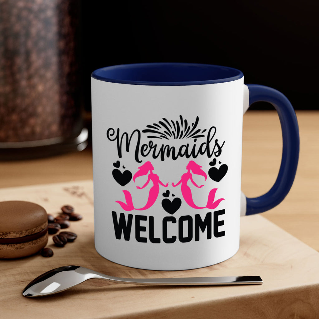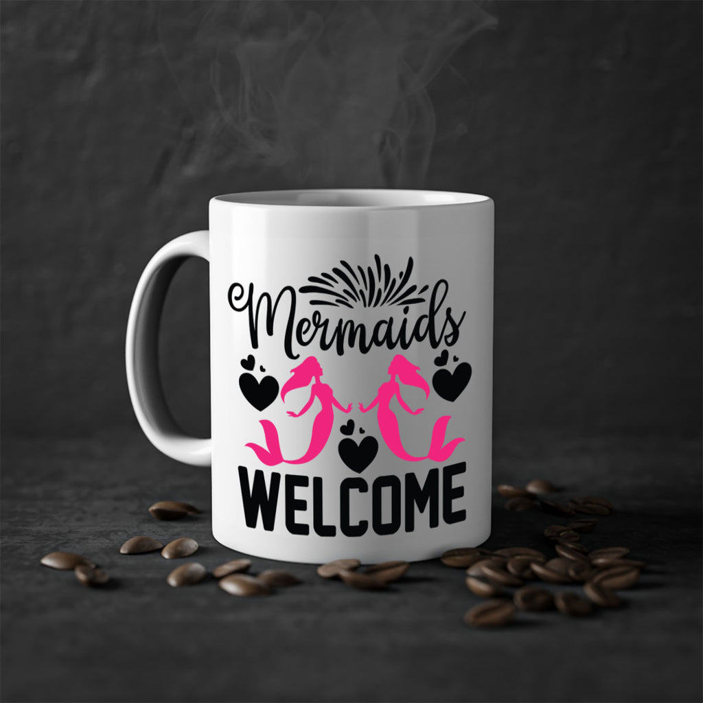 Enjoy the Mermaids Welcome 499# Mug . Here to bring big gulps of coffee, Tea or any beverage and style, these two-tone coffee mugs help people around the world start the day just right. Choose between 5 different color options and 2 sizes to best complement the design. Each mug comes with a colored handle, a colored interior, and a classy, glossy finish so that your mugs become an instant favorite.