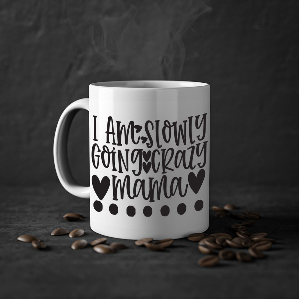 Enjoy the i am slowly going crazy mama 404# Mug . Here to bring big gulps of coffee, Tea or any beverage and style, these two-tone coffee mugs help people around the world start the day just right. Choose between 5 different color options and 2 sizes to best complement the design. Each mug comes with a colored handle, a colored interior, and a classy, glossy finish so that your mugs become an instant favorite.