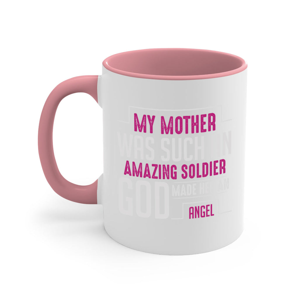 Enjoy the my mother was such an amazing soldier god made her an angel 81# Mug . Here to bring big gulps of coffee, Tea or any beverage and style, these two-tone coffee mugs help people around the world start the day just right. Choose between 5 different color options and 2 sizes to best complement the design. Each mug comes with a colored handle, a colored interior, and a classy, glossy finish so that your mugs become an instant favorite.