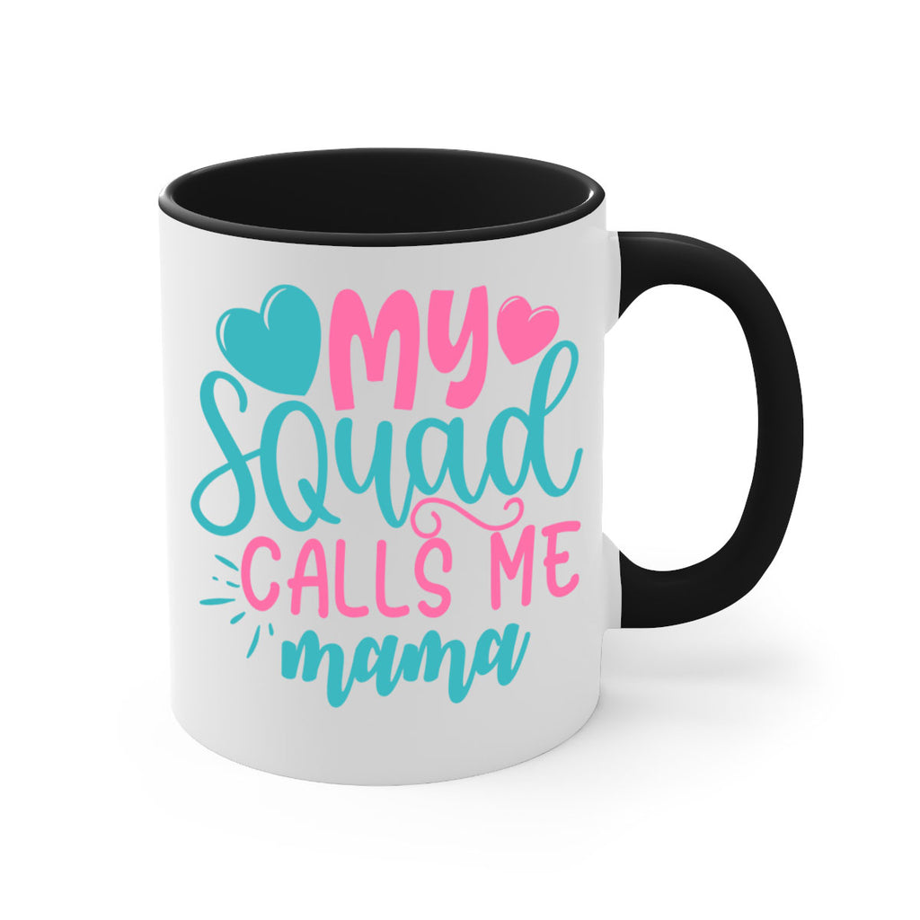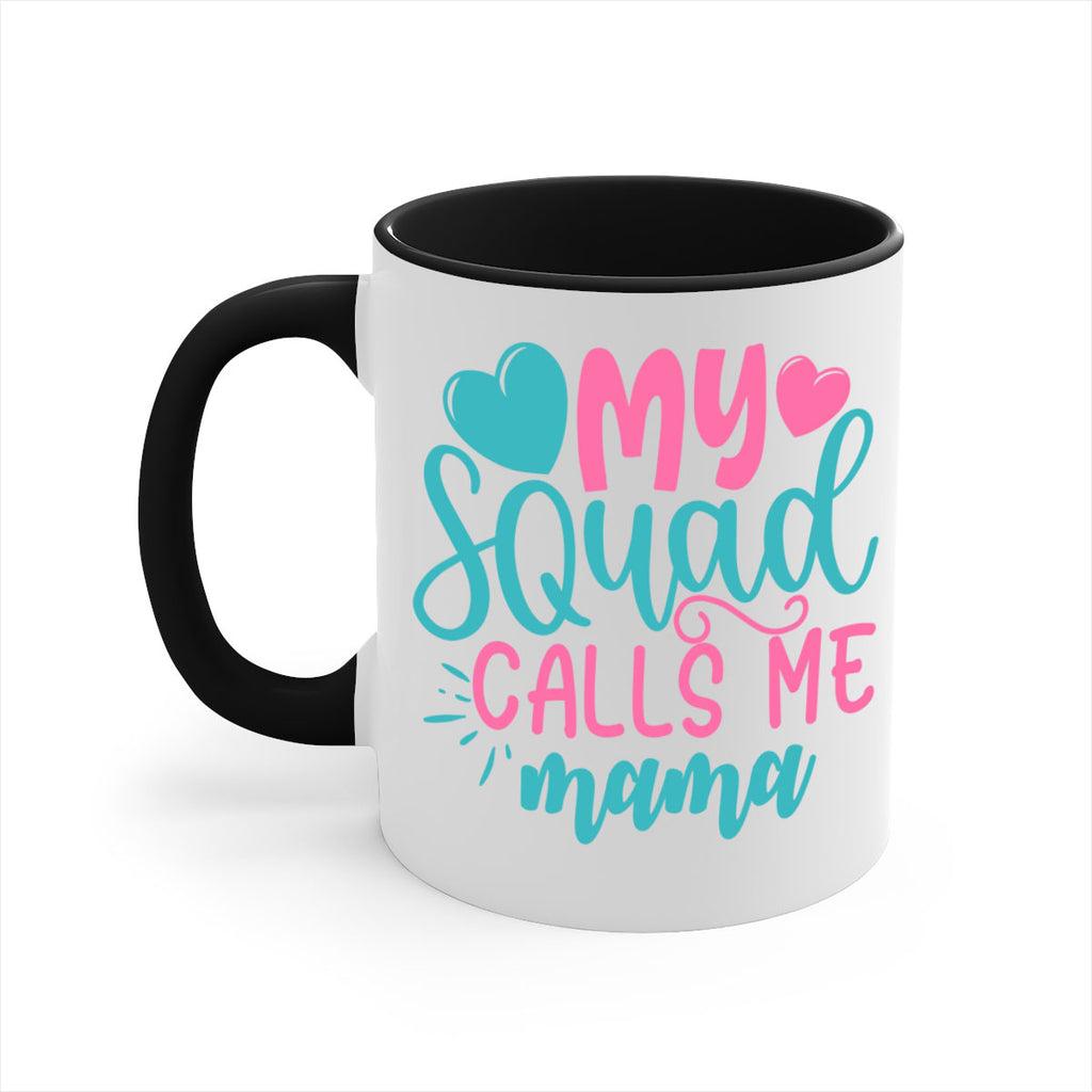 Enjoy the my squad calls me mama 307# Mug . Here to bring big gulps of coffee, Tea or any beverage and style, these two-tone coffee mugs help people around the world start the day just right. Choose between 5 different color options and 2 sizes to best complement the design. Each mug comes with a colored handle, a colored interior, and a classy, glossy finish so that your mugs become an instant favorite.