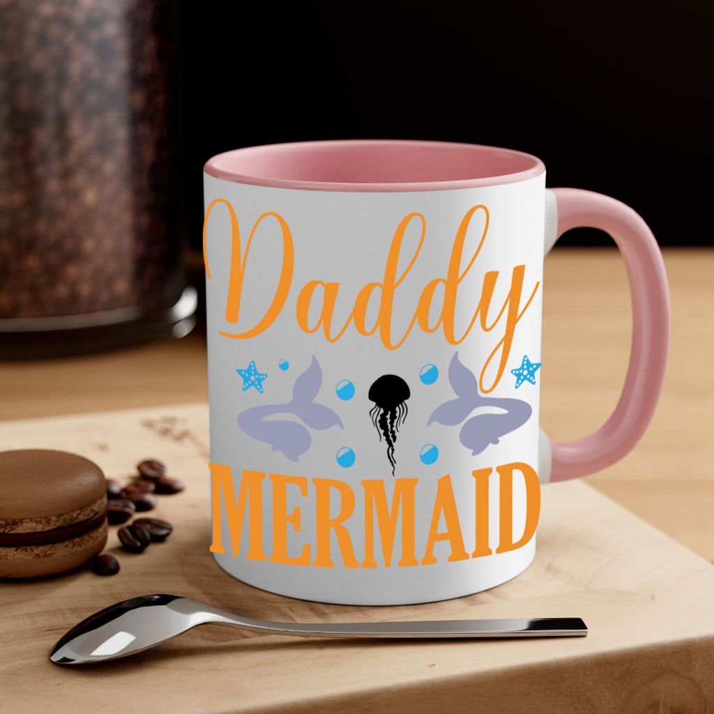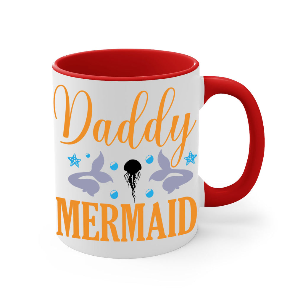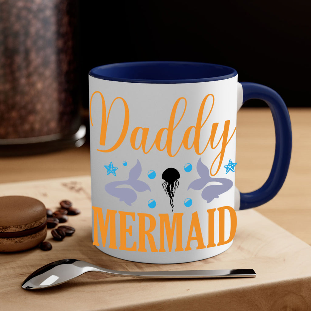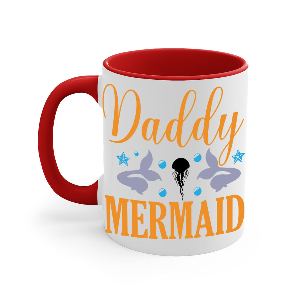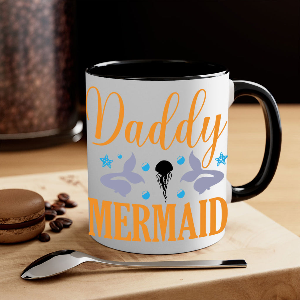 Enjoy the Daddy Mermaid Design 113# Mug . Here to bring big gulps of coffee, Tea or any beverage and style, these two-tone coffee mugs help people around the world start the day just right. Choose between 5 different color options and 2 sizes to best complement the design. Each mug comes with a colored handle, a colored interior, and a classy, glossy finish so that your mugs become an instant favorite.