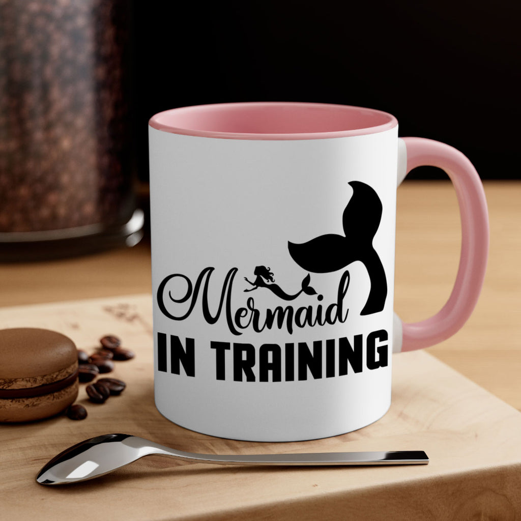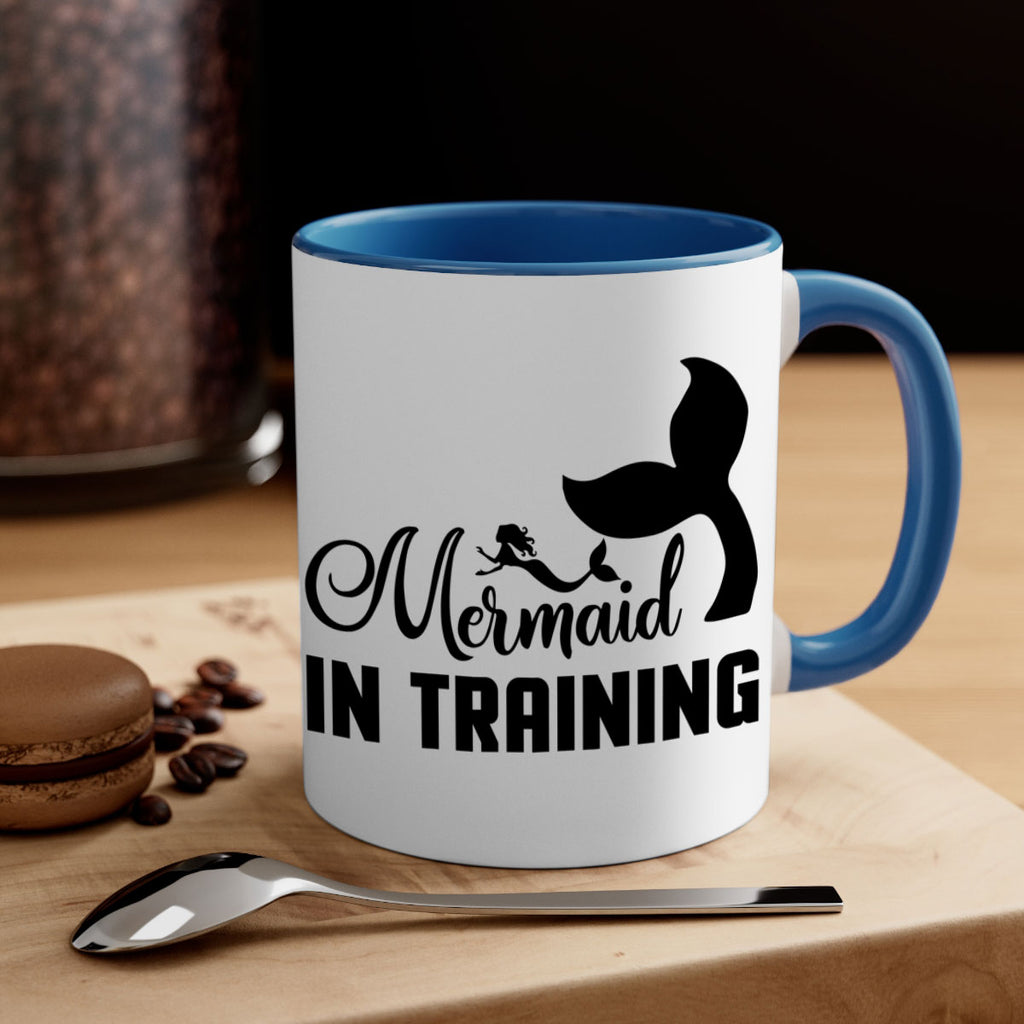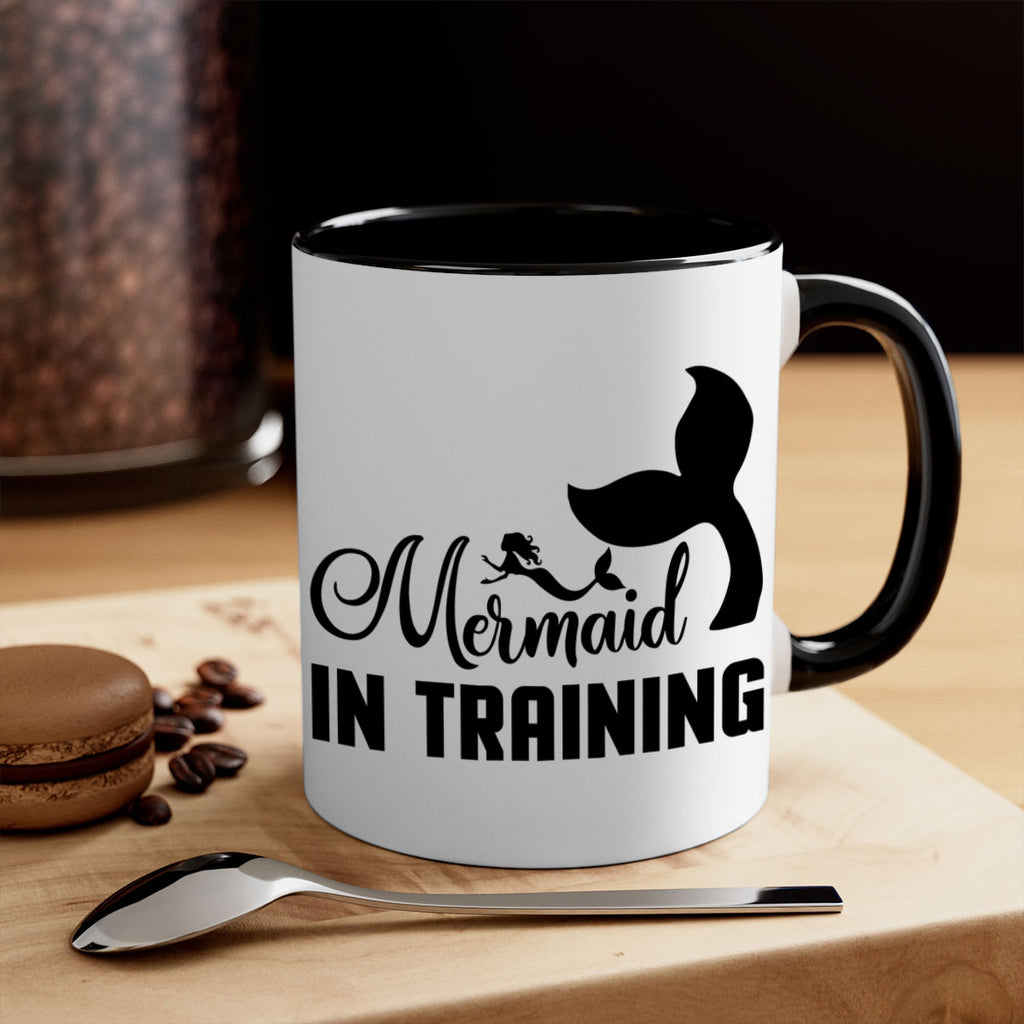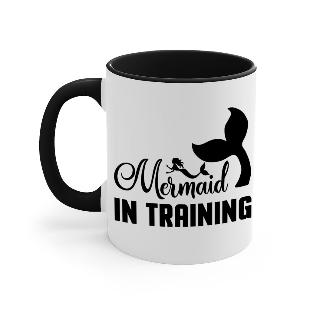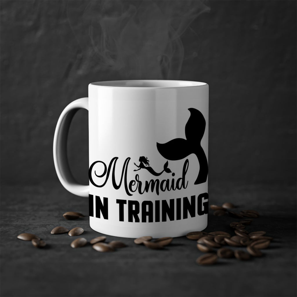 Enjoy the Mermaid in training 423# Mug . Here to bring big gulps of coffee, Tea or any beverage and style, these two-tone coffee mugs help people around the world start the day just right. Choose between 5 different color options and 2 sizes to best complement the design. Each mug comes with a colored handle, a colored interior, and a classy, glossy finish so that your mugs become an instant favorite.