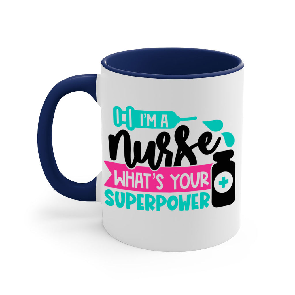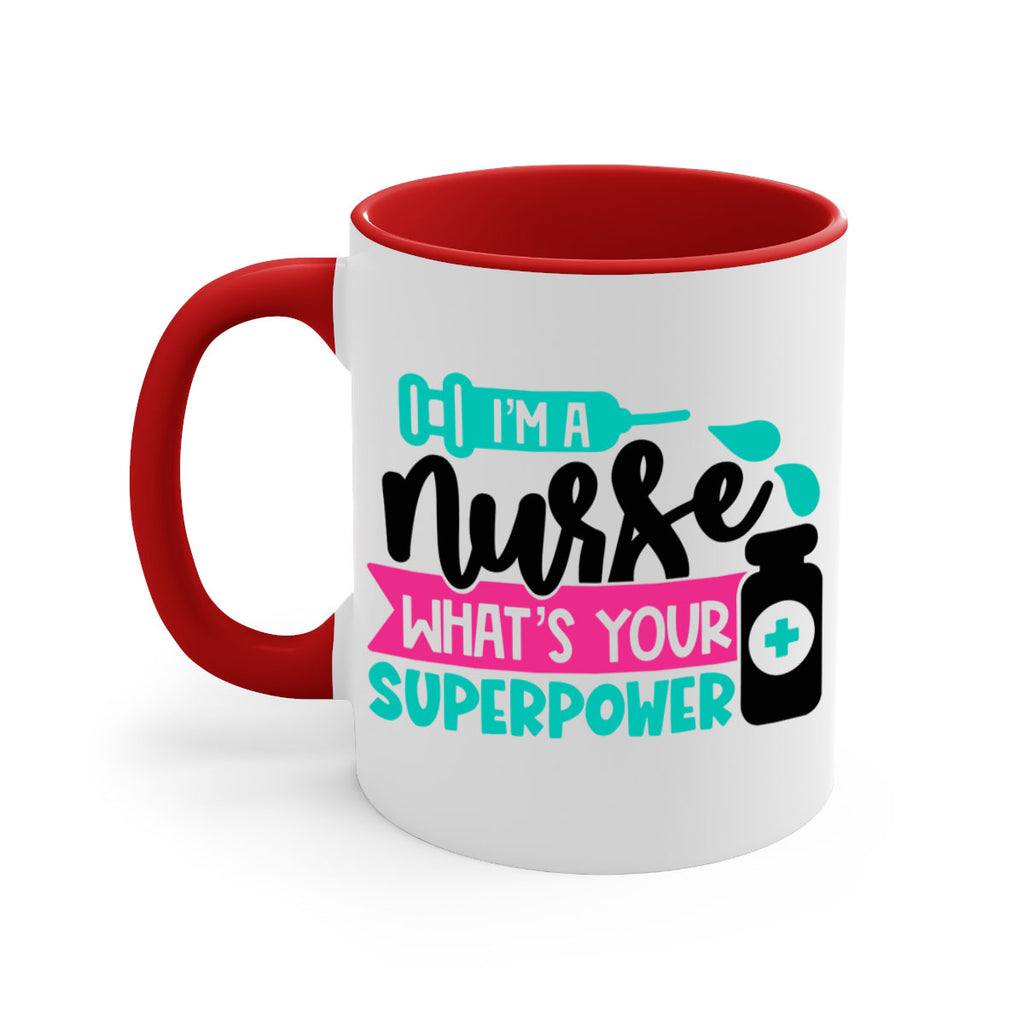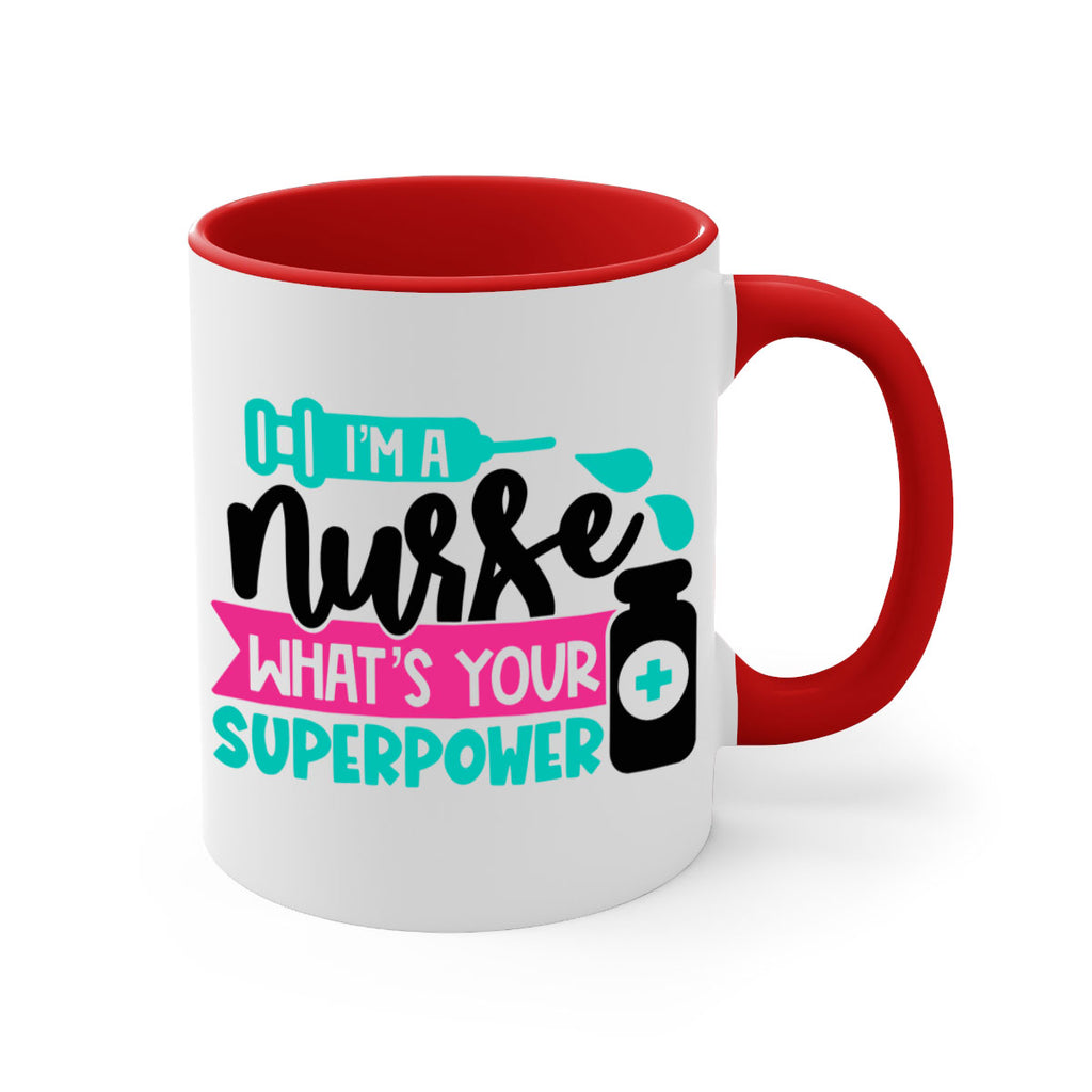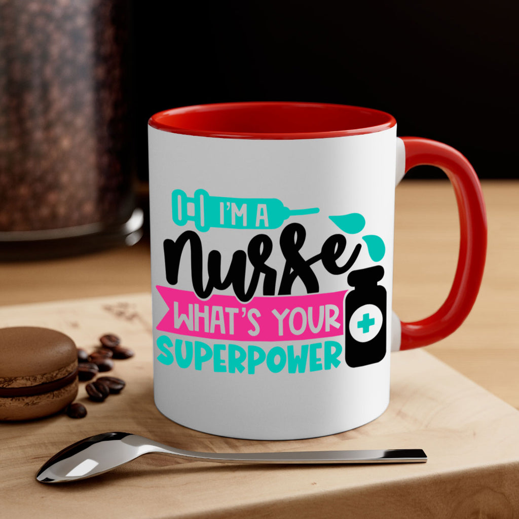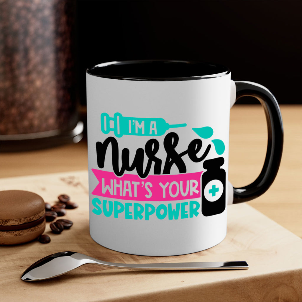 Enjoy the Im A Nurse Whats Your Superpower Style Style 156# Mug . Here to bring big gulps of coffee, Tea or any beverage and style, these two-tone coffee mugs help people around the world start the day just right. Choose between 5 different color options and 2 sizes to best complement the design. Each mug comes with a colored handle, a colored interior, and a classy, glossy finish so that your mugs become an instant favorite.