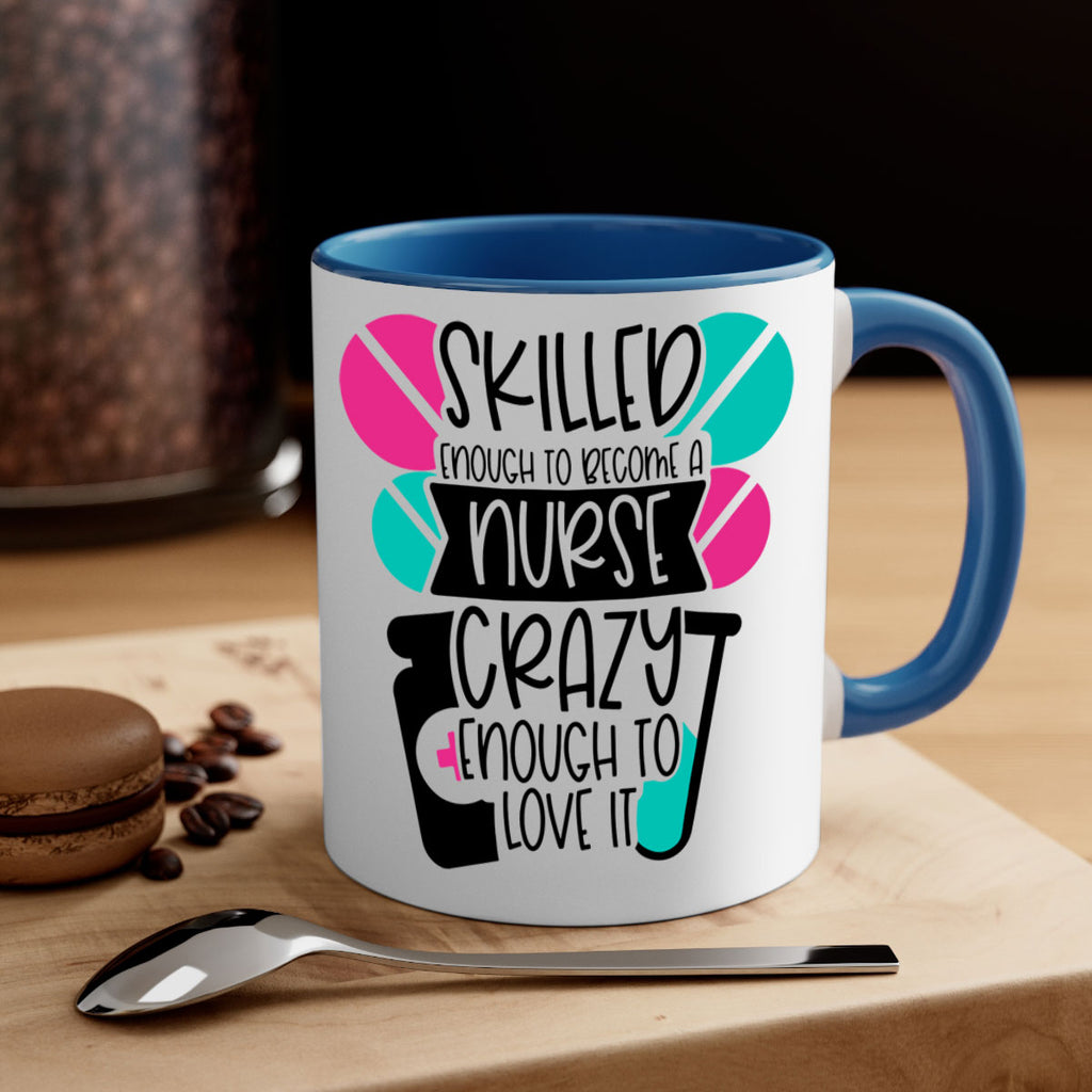 Enjoy the Skilled Enough To Become A Nurse Crazy Enough To Love It Style Style 39# Mug . Here to bring big gulps of coffee, Tea or any beverage and style, these two-tone coffee mugs help people around the world start the day just right. Choose between 5 different color options and 2 sizes to best complement the design. Each mug comes with a colored handle, a colored interior, and a classy, glossy finish so that your mugs become an instant favorite.