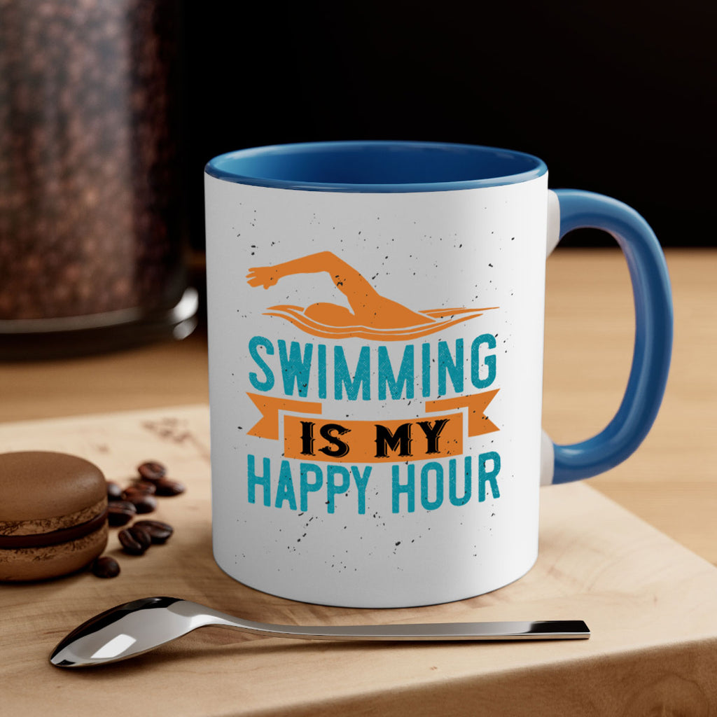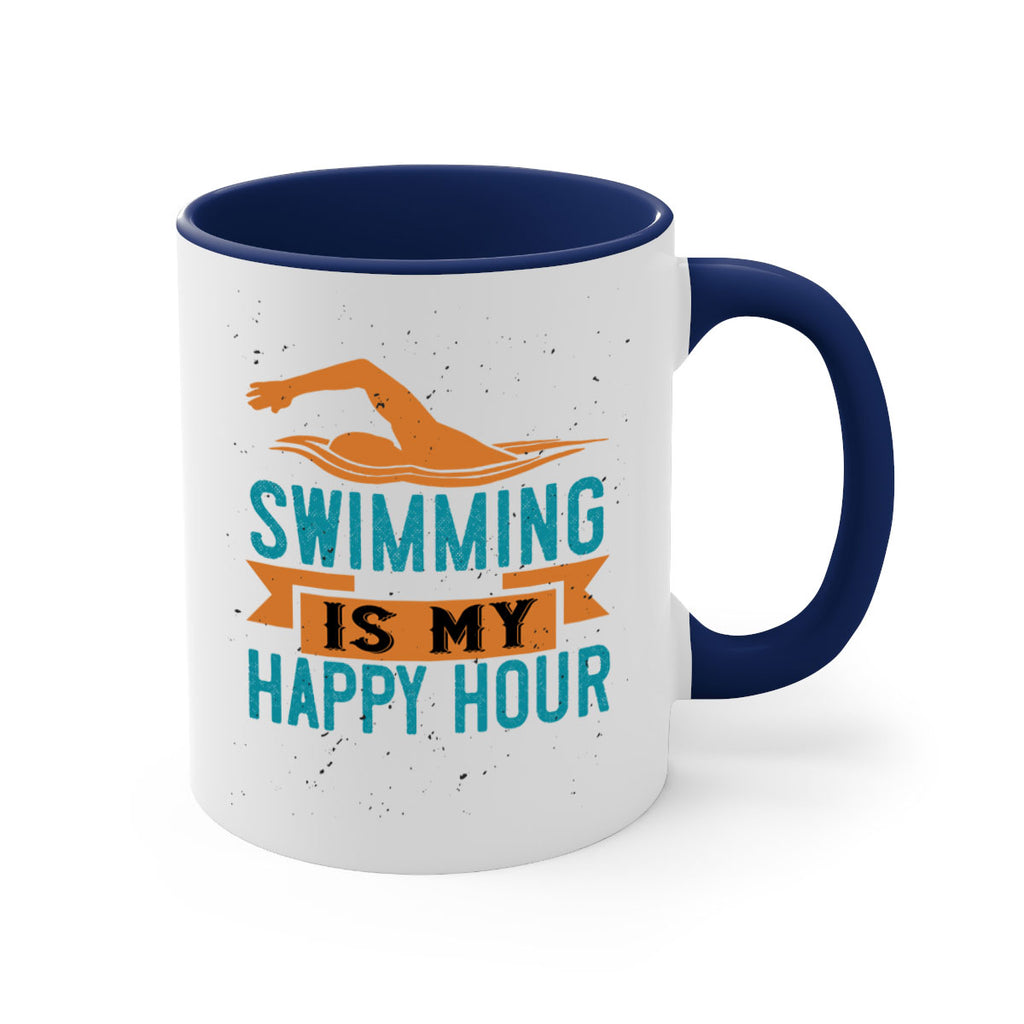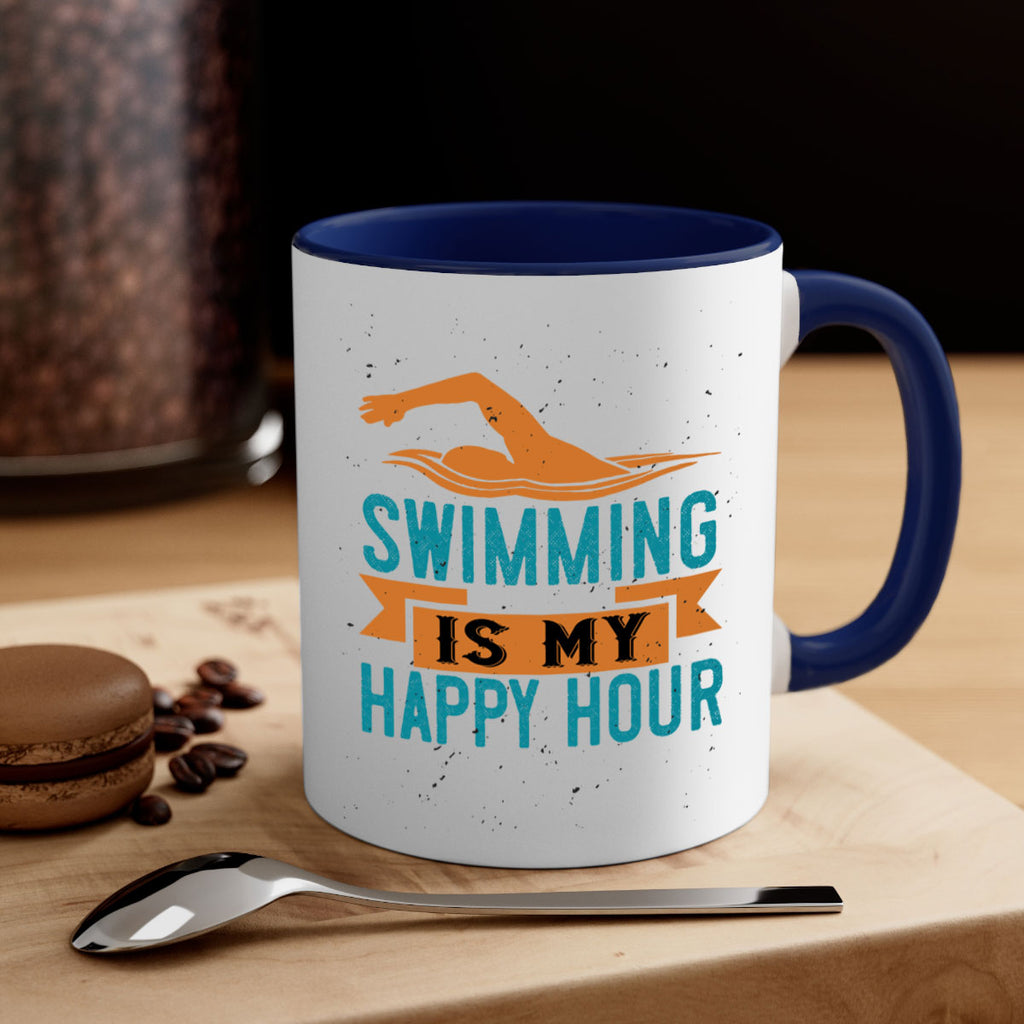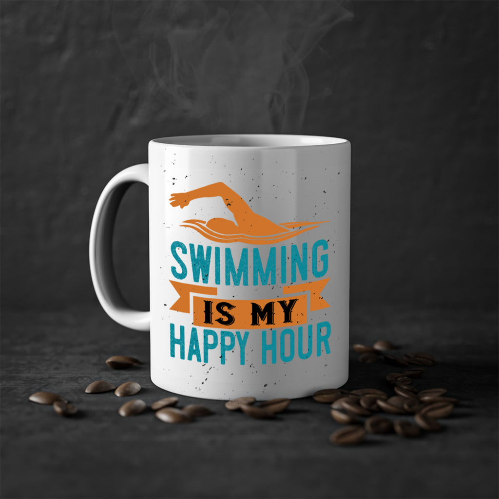 Enjoy the swimming is myhappy hour 378# Mug . Here to bring big gulps of coffee, Tea or any beverage and style, these two-tone coffee mugs help people around the world start the day just right. Choose between 5 different color options and 2 sizes to best complement the design. Each mug comes with a colored handle, a colored interior, and a classy, glossy finish so that your mugs become an instant favorite.