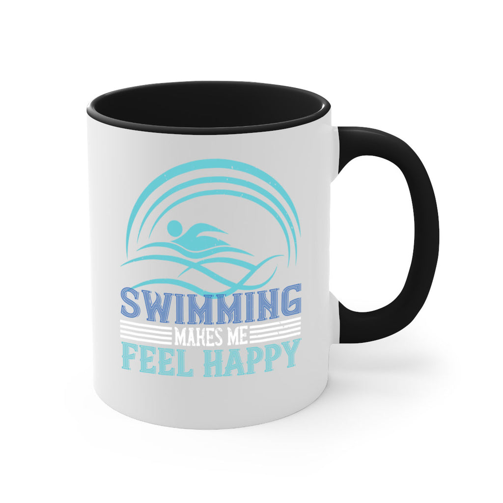 Enjoy the Swimming makes me feel happy 374# Mug . Here to bring big gulps of coffee, Tea or any beverage and style, these two-tone coffee mugs help people around the world start the day just right. Choose between 5 different color options and 2 sizes to best complement the design. Each mug comes with a colored handle, a colored interior, and a classy, glossy finish so that your mugs become an instant favorite.