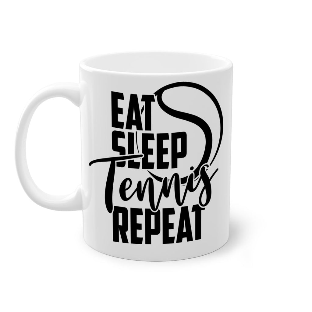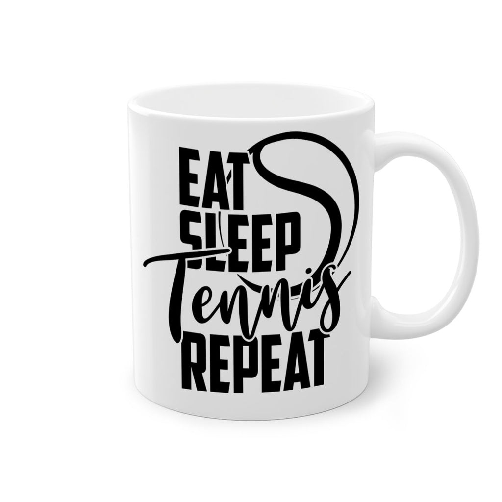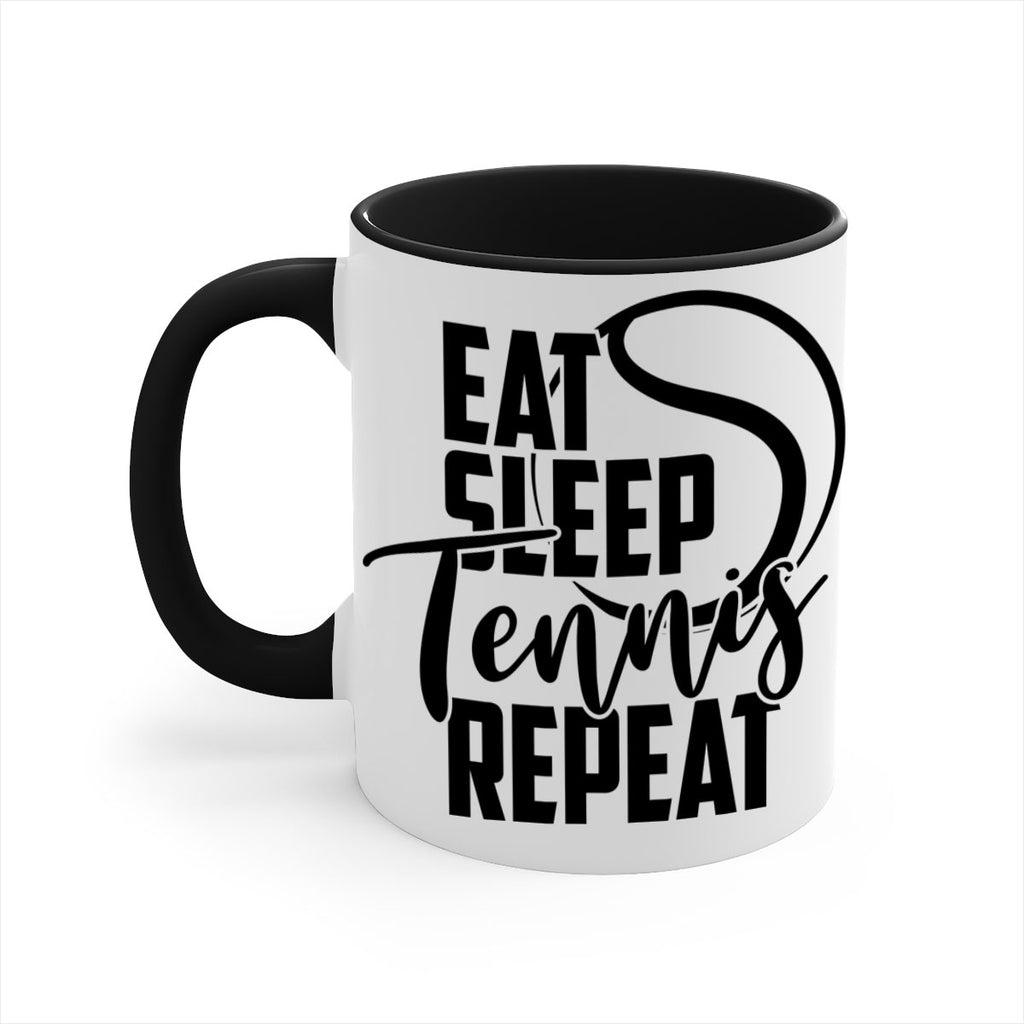 Enjoy the Eat Sleep Tennis Repeat 1292# Mug . Here to bring big gulps of coffee, Tea or any beverage and style, these two-tone coffee mugs help people around the world start the day just right. Choose between 5 different color options and 2 sizes to best complement the design. Each mug comes with a colored handle, a colored interior, and a classy, glossy finish so that your mugs become an instant favorite.