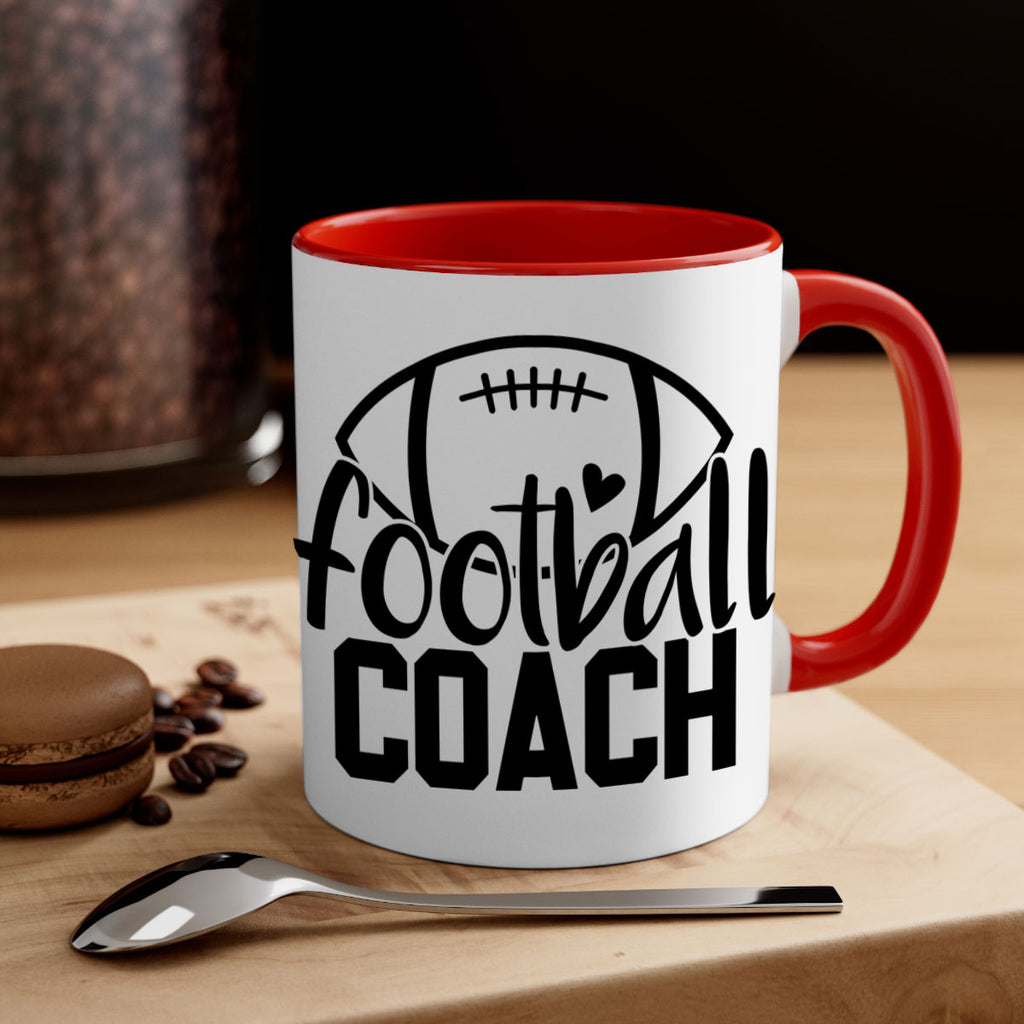 Enjoy the Football coach 1251# Mug . Here to bring big gulps of coffee, Tea or any beverage and style, these two-tone coffee mugs help people around the world start the day just right. Choose between 5 different color options and 2 sizes to best complement the design. Each mug comes with a colored handle, a colored interior, and a classy, glossy finish so that your mugs become an instant favorite.