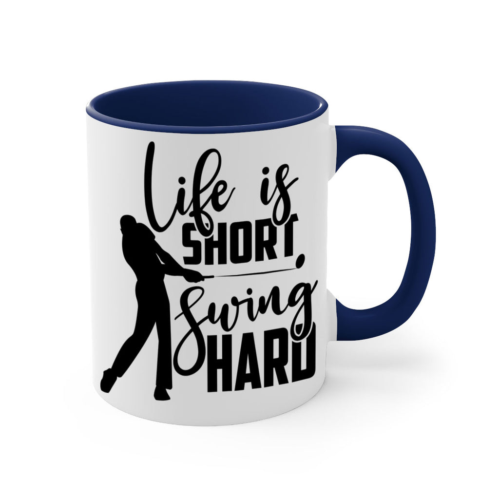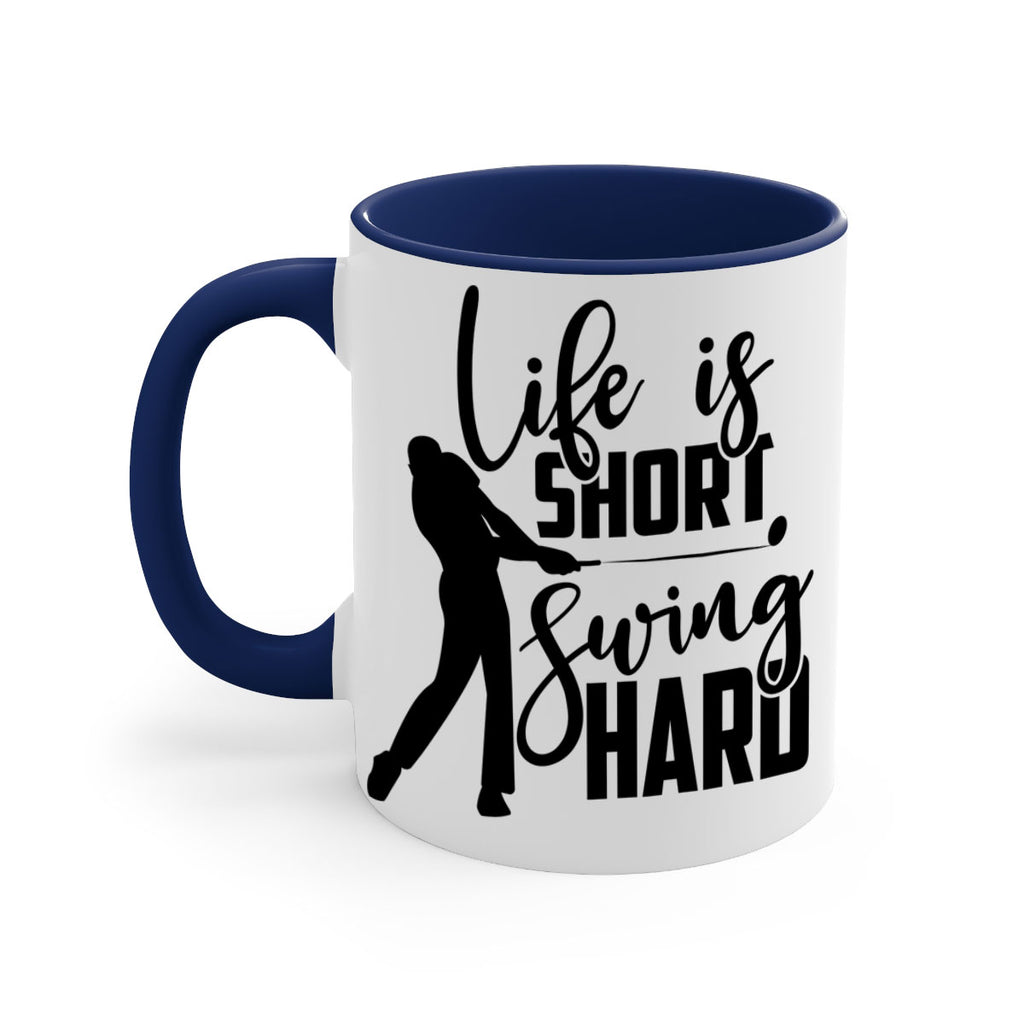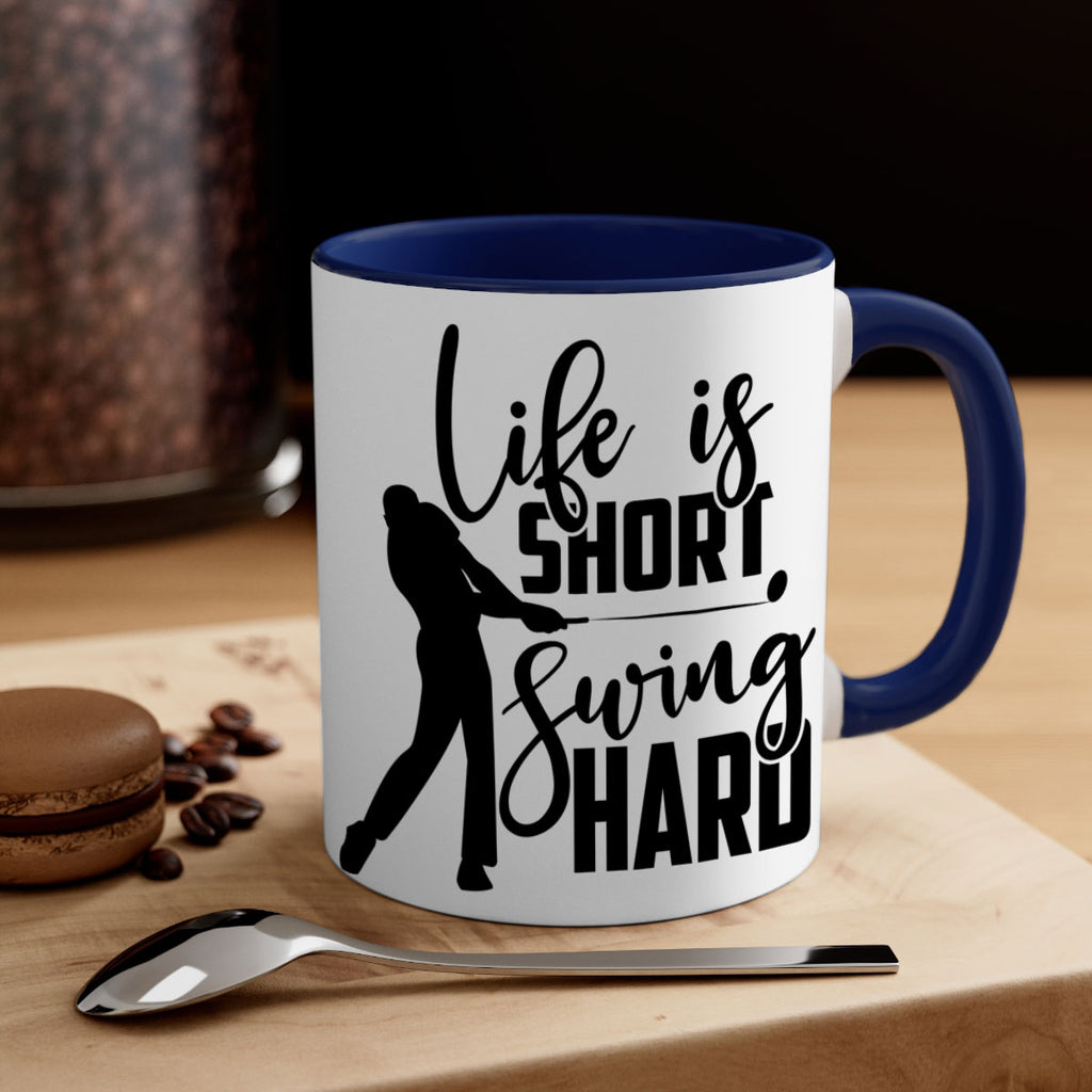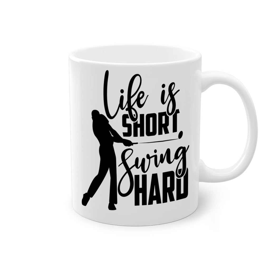 Enjoy the Life is short Swing hard 896# Mug . Here to bring big gulps of coffee, Tea or any beverage and style, these two-tone coffee mugs help people around the world start the day just right. Choose between 5 different color options and 2 sizes to best complement the design. Each mug comes with a colored handle, a colored interior, and a classy, glossy finish so that your mugs become an instant favorite.
