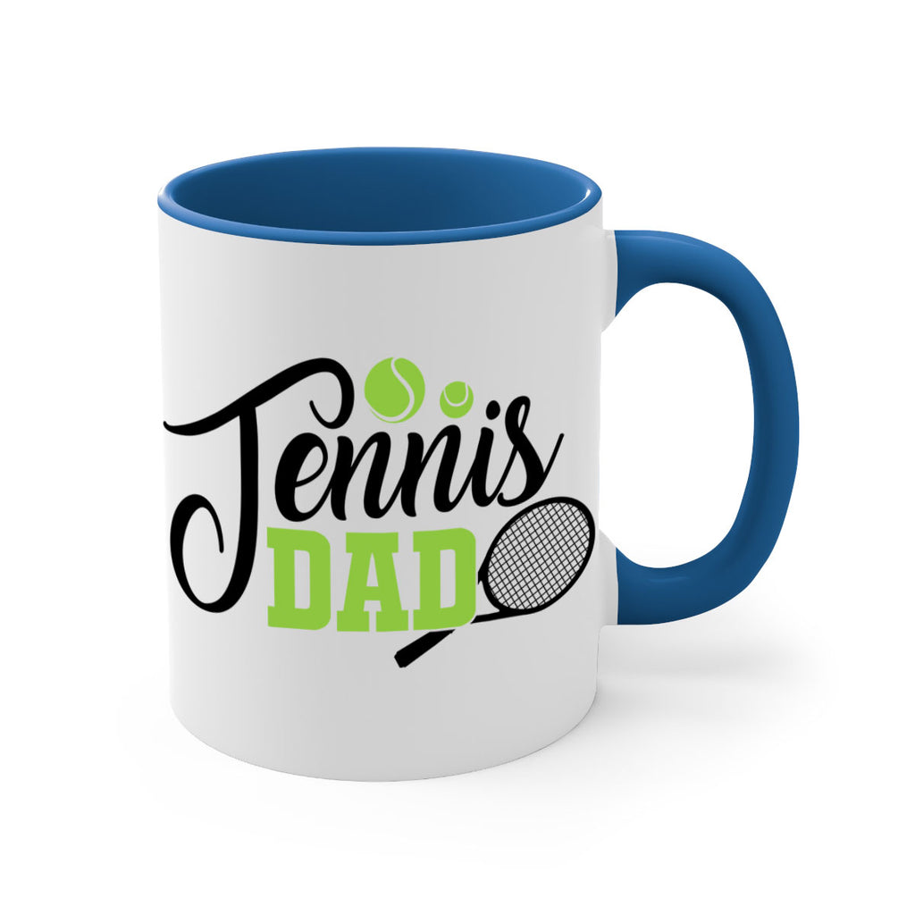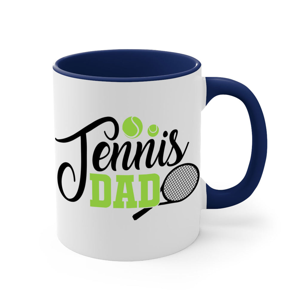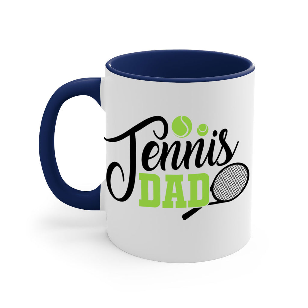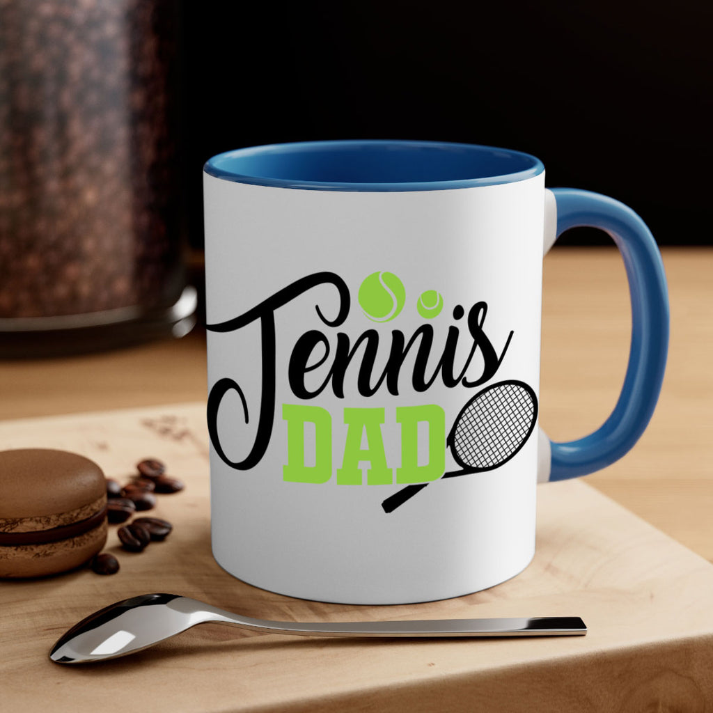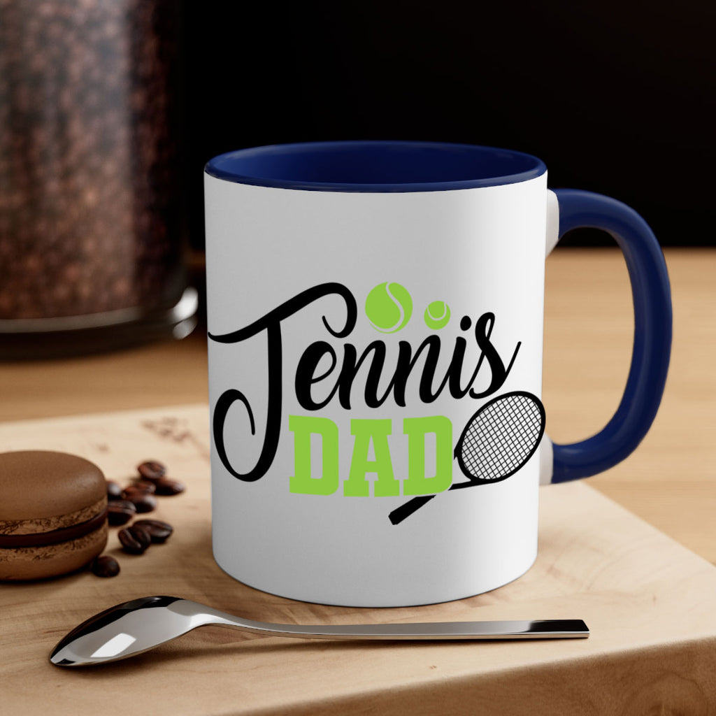 Enjoy the Tennis dad 324# Mug . Here to bring big gulps of coffee, Tea or any beverage and style, these two-tone coffee mugs help people around the world start the day just right. Choose between 5 different color options and 2 sizes to best complement the design. Each mug comes with a colored handle, a colored interior, and a classy, glossy finish so that your mugs become an instant favorite.