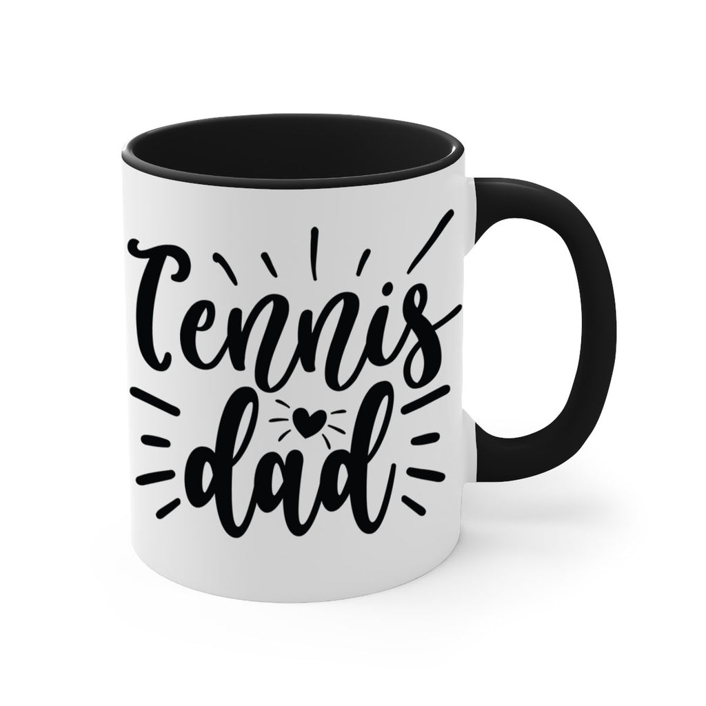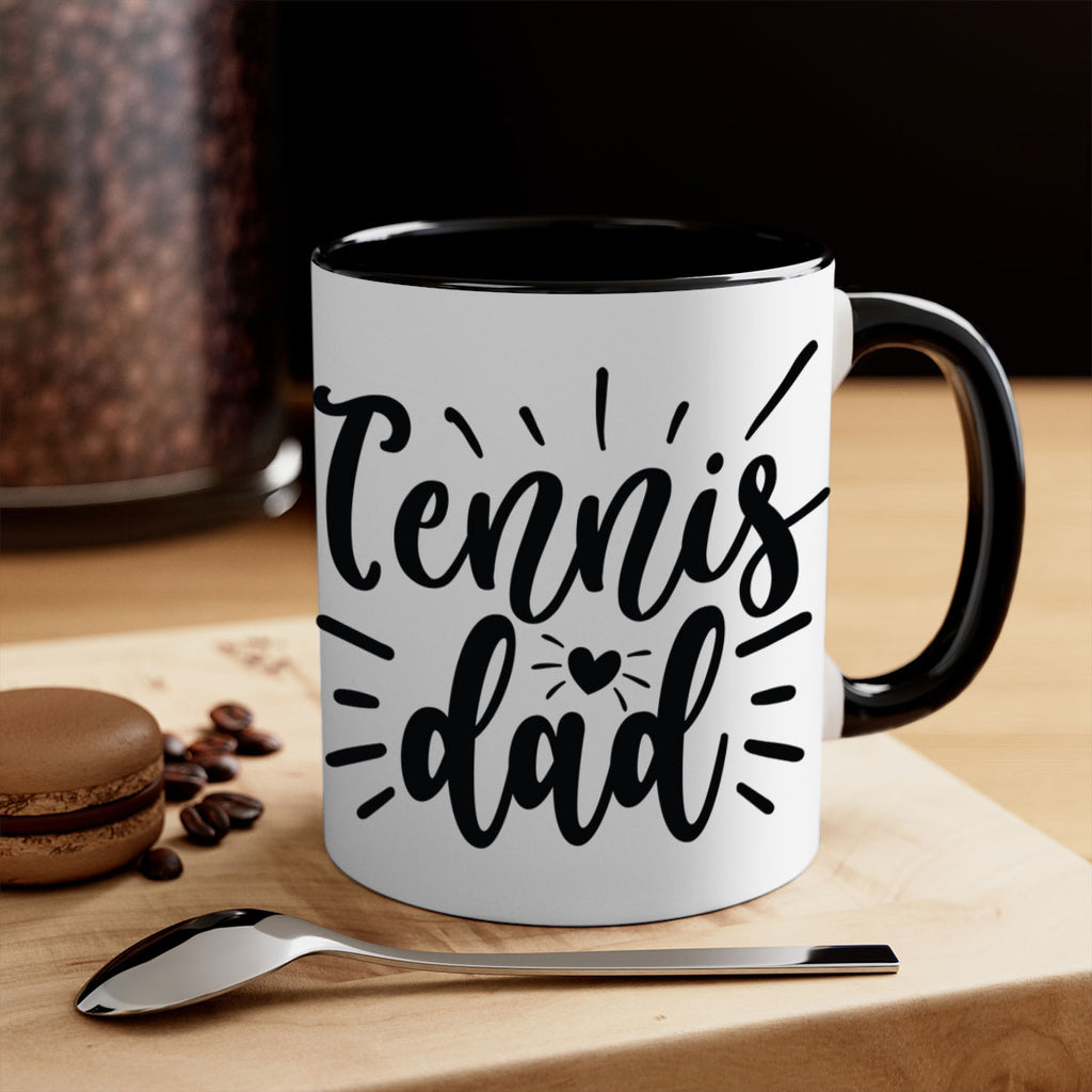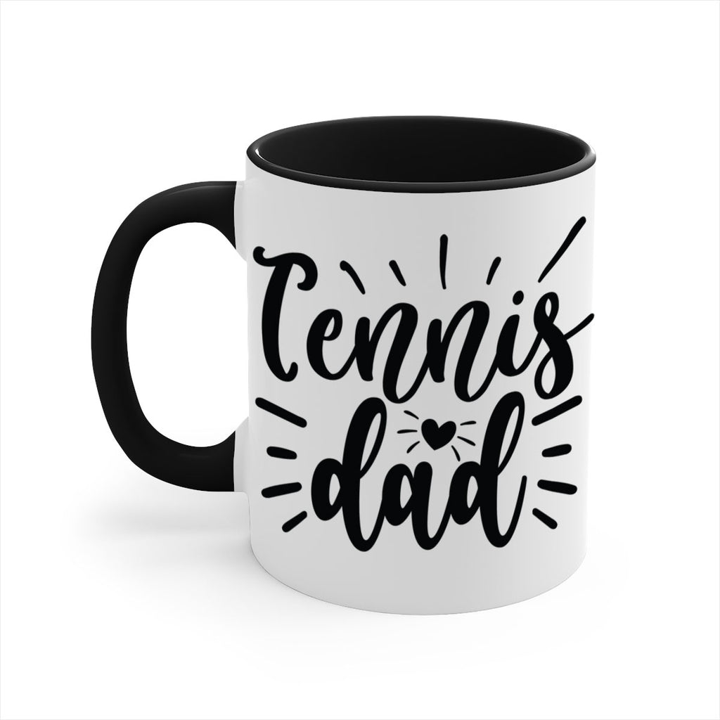 Enjoy the Tennis dad 325# Mug . Here to bring big gulps of coffee, Tea or any beverage and style, these two-tone coffee mugs help people around the world start the day just right. Choose between 5 different color options and 2 sizes to best complement the design. Each mug comes with a colored handle, a colored interior, and a classy, glossy finish so that your mugs become an instant favorite.