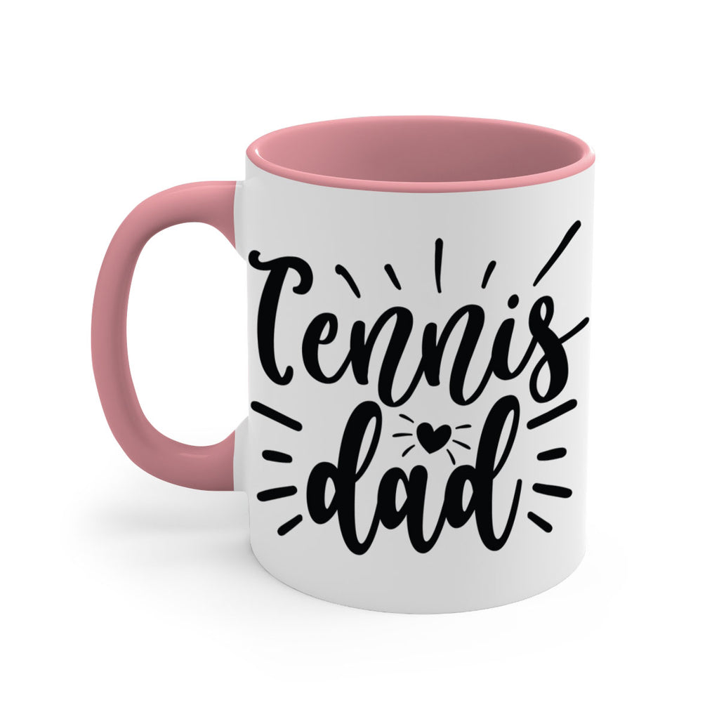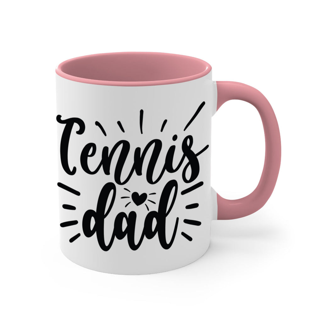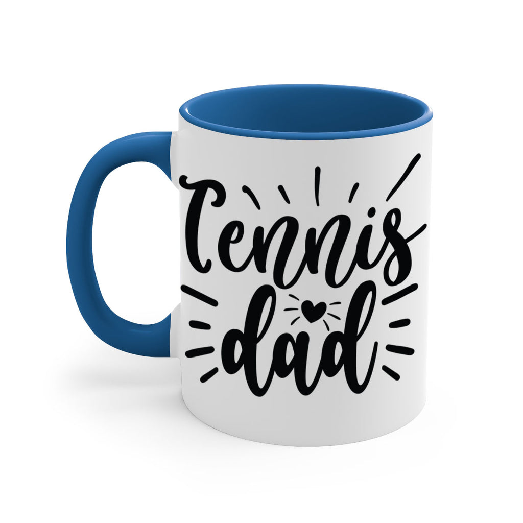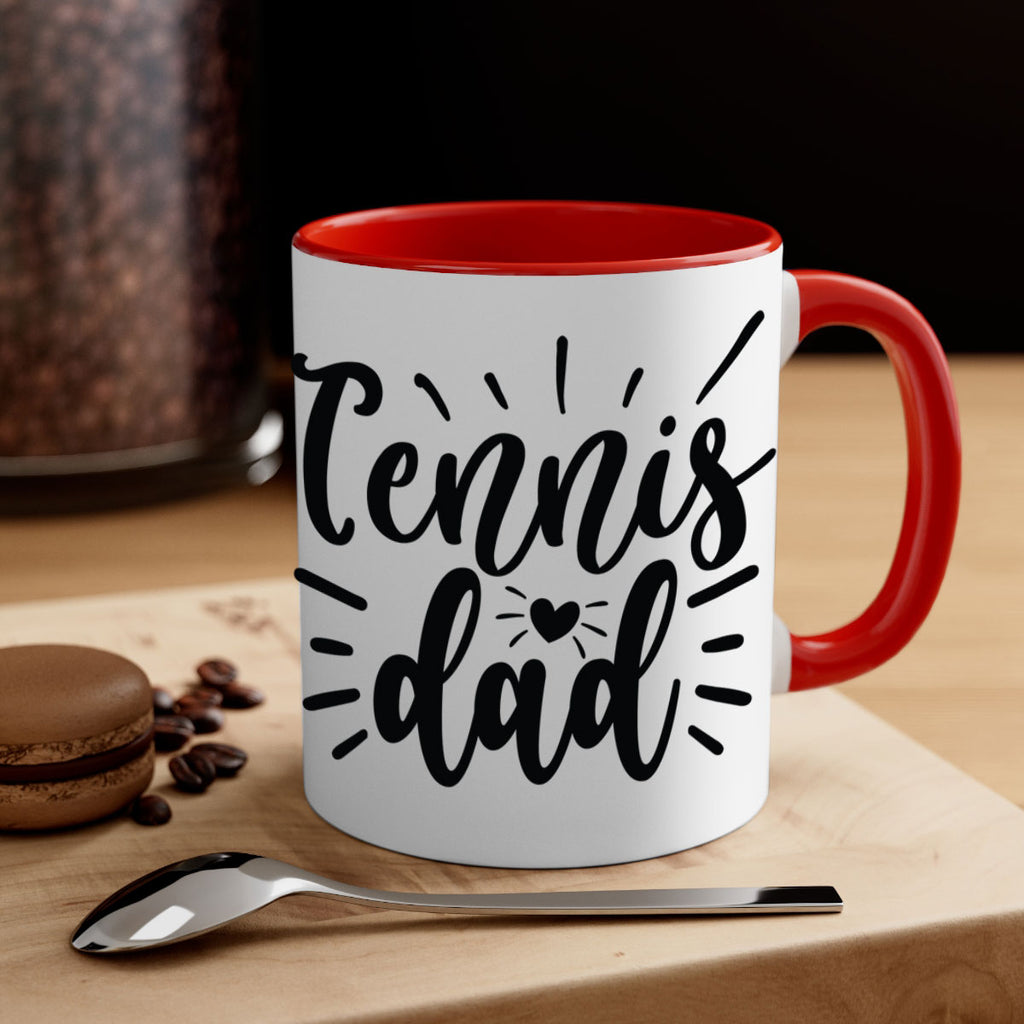 Enjoy the Tennis dad 325# Mug . Here to bring big gulps of coffee, Tea or any beverage and style, these two-tone coffee mugs help people around the world start the day just right. Choose between 5 different color options and 2 sizes to best complement the design. Each mug comes with a colored handle, a colored interior, and a classy, glossy finish so that your mugs become an instant favorite.