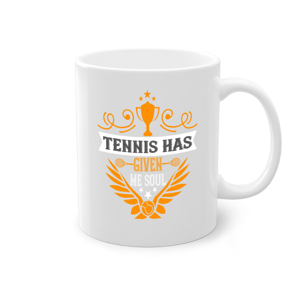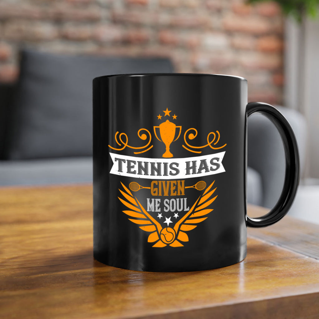 Enjoy the Tennis has given me soul 318# Mug . Here to bring big gulps of coffee, Tea or any beverage and style, these two-tone coffee mugs help people around the world start the day just right. Choose between 5 different color options and 2 sizes to best complement the design. Each mug comes with a colored handle, a colored interior, and a classy, glossy finish so that your mugs become an instant favorite.