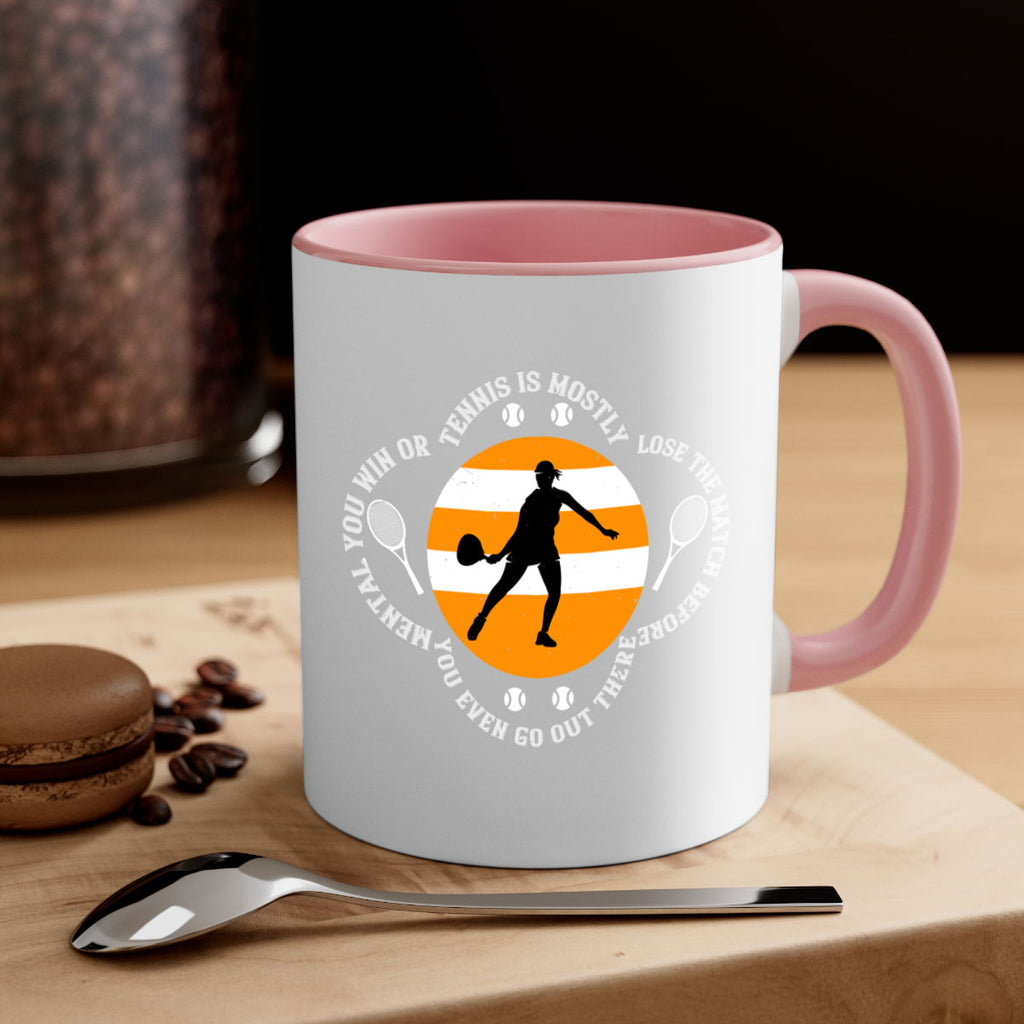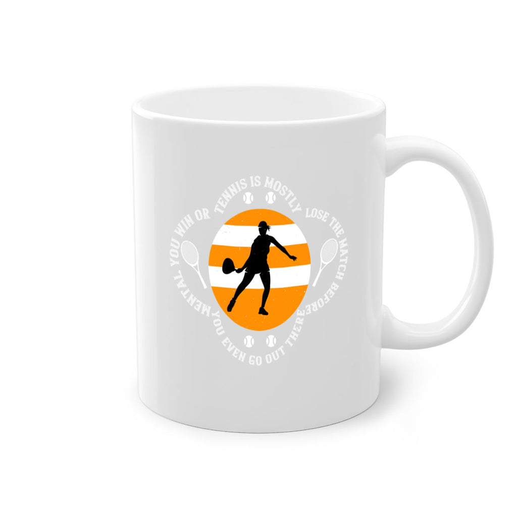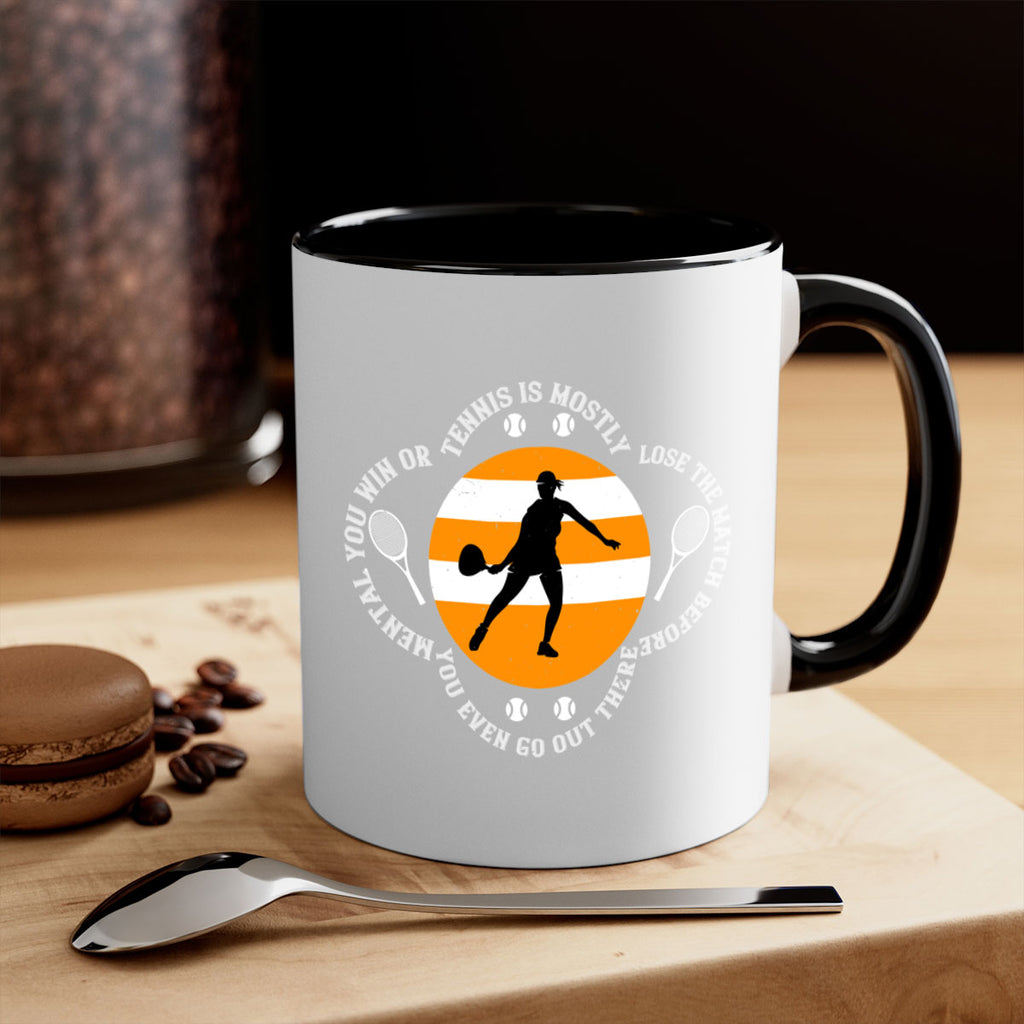 Enjoy the Tennis is mostly mental You win or lose the match before you even go out there 305# Mug . Here to bring big gulps of coffee, Tea or any beverage and style, these two-tone coffee mugs help people around the world start the day just right. Choose between 5 different color options and 2 sizes to best complement the design. Each mug comes with a colored handle, a colored interior, and a classy, glossy finish so that your mugs become an instant favorite.