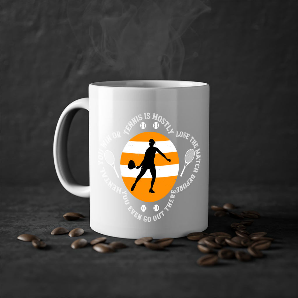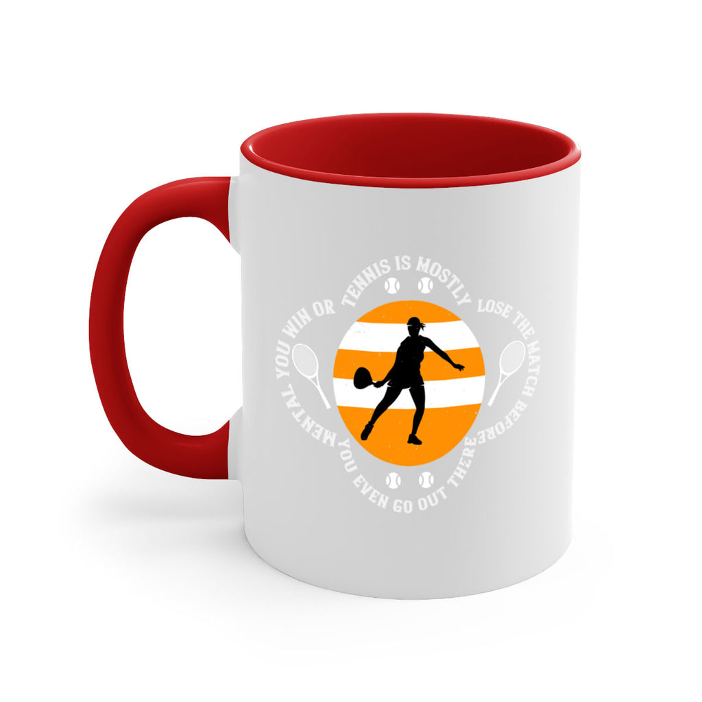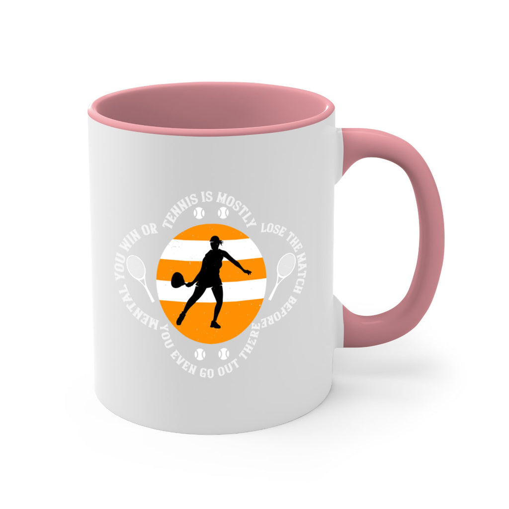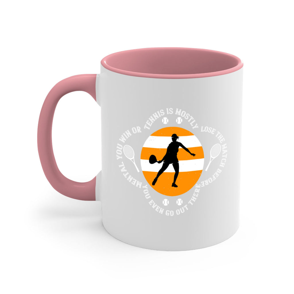 Enjoy the Tennis is mostly mental You win or lose the match before you even go out there 305# Mug . Here to bring big gulps of coffee, Tea or any beverage and style, these two-tone coffee mugs help people around the world start the day just right. Choose between 5 different color options and 2 sizes to best complement the design. Each mug comes with a colored handle, a colored interior, and a classy, glossy finish so that your mugs become an instant favorite.