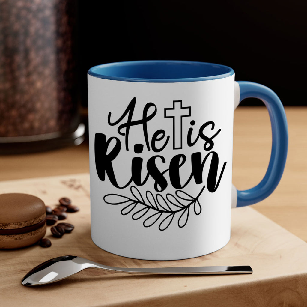 Enjoy the He is risen 181# Mug . Here to bring big gulps of coffee, Tea or any beverage and style, these two-tone coffee mugs help people around the world start the day just right. Choose between 5 different color options and 2 sizes to best complement the design. Each mug comes with a colored handle, a colored interior, and a classy, glossy finish so that your mugs become an instant favorite.