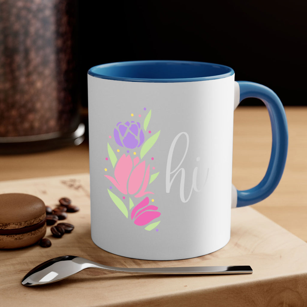 Enjoy the Hi pink flowers238# Mug . Here to bring big gulps of coffee, Tea or any beverage and style, these two-tone coffee mugs help people around the world start the day just right. Choose between 5 different color options and 2 sizes to best complement the design. Each mug comes with a colored handle, a colored interior, and a classy, glossy finish so that your mugs become an instant favorite.
