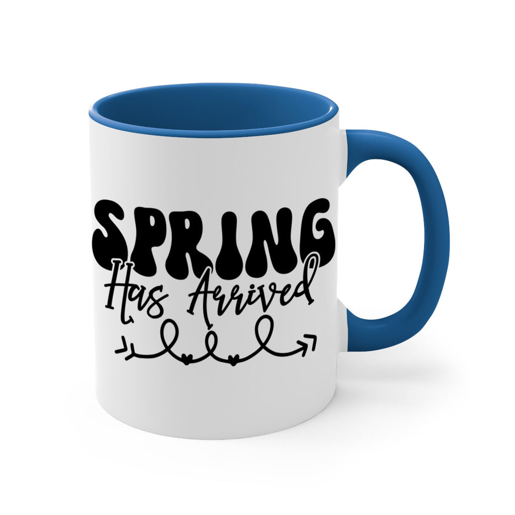 Enjoy the Spring Has Arrived430# Mug . Here to bring big gulps of coffee, Tea or any beverage and style, these two-tone coffee mugs help people around the world start the day just right. Choose between 5 different color options and 2 sizes to best complement the design. Each mug comes with a colored handle, a colored interior, and a classy, glossy finish so that your mugs become an instant favorite.