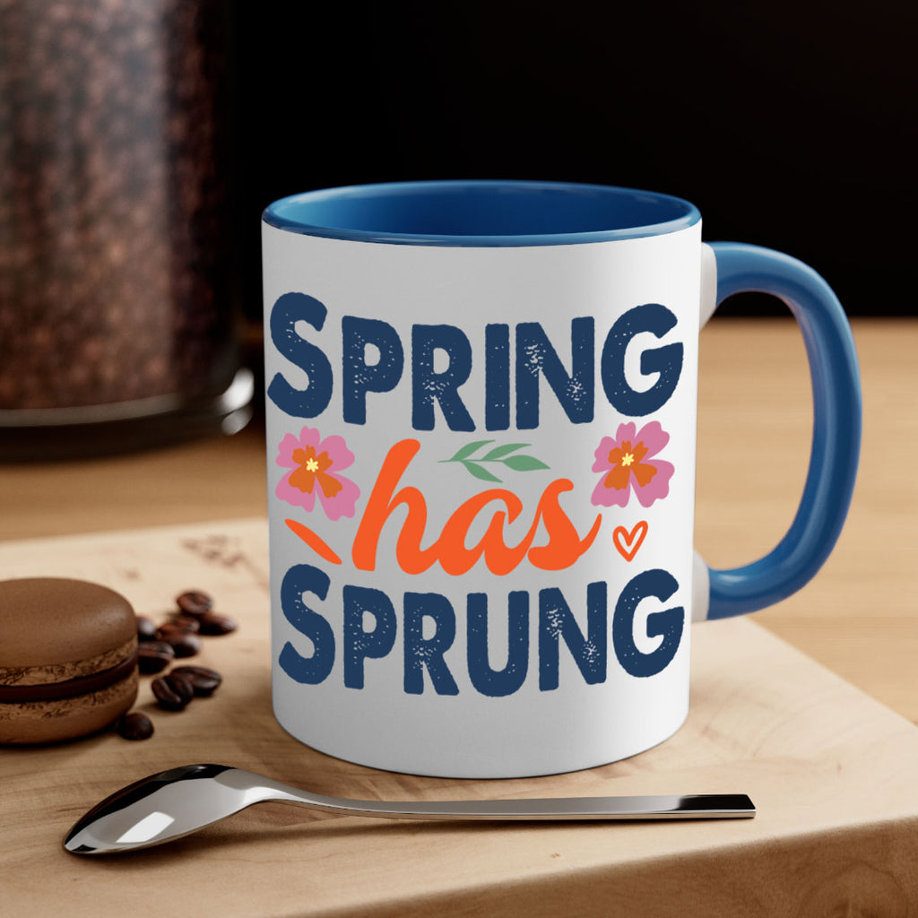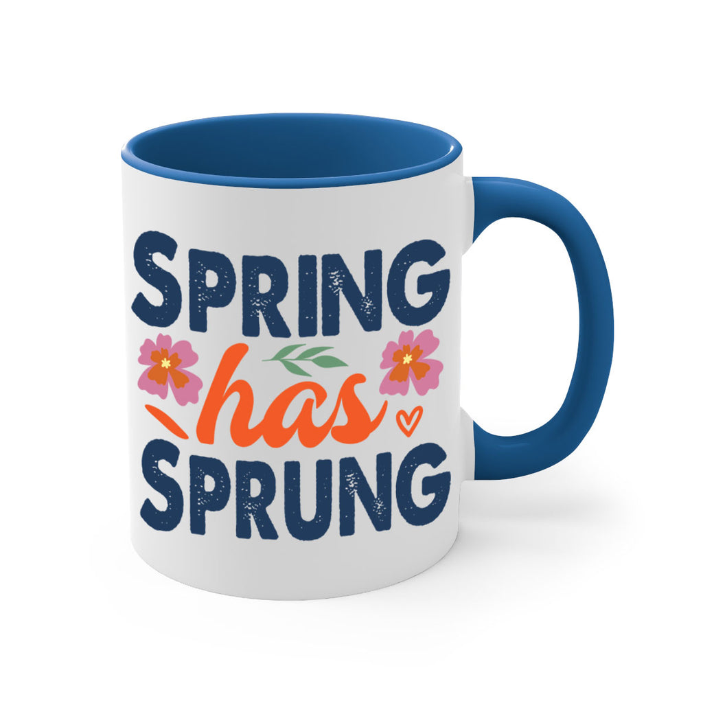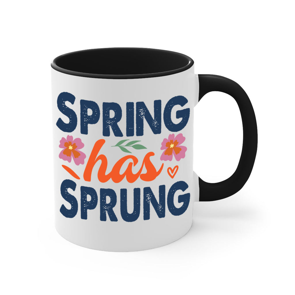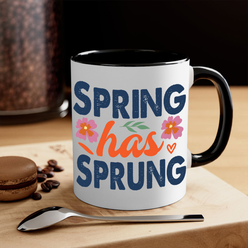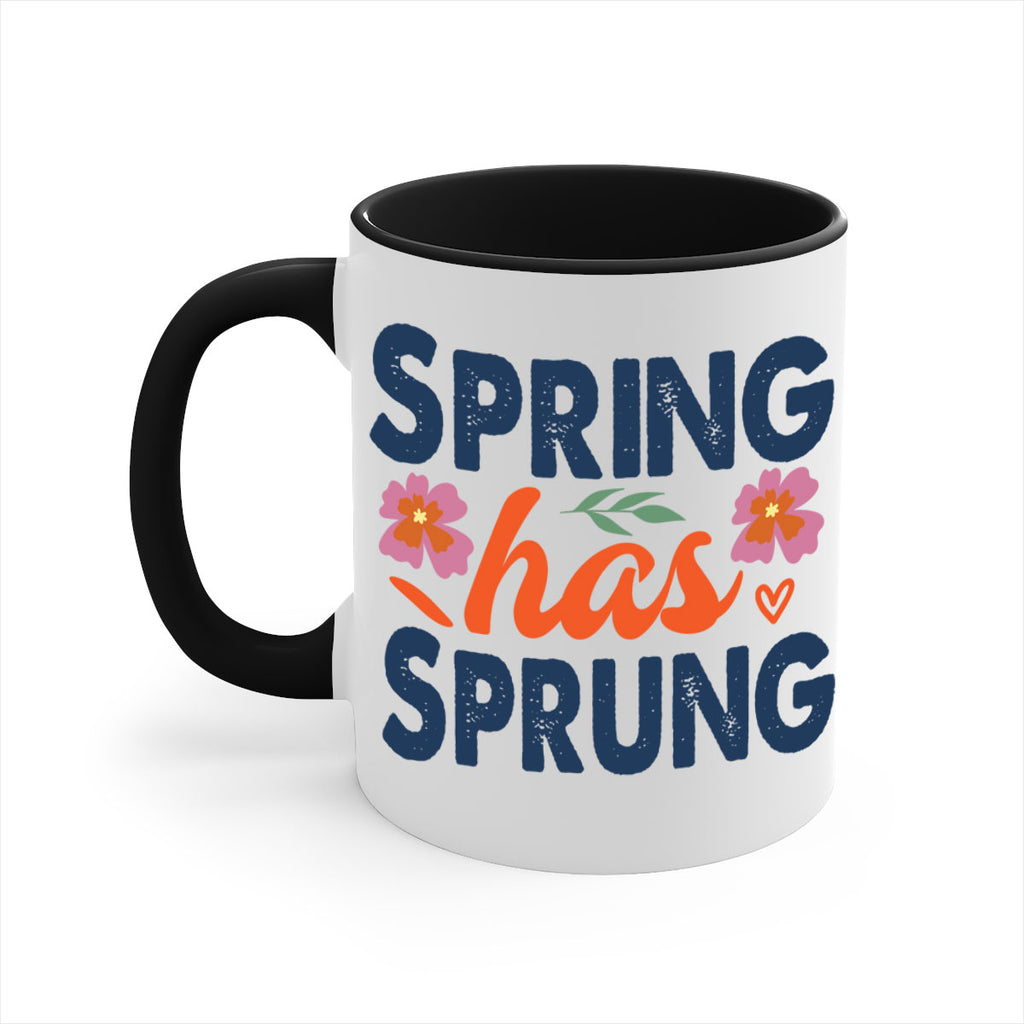 Enjoy the Spring Has Sprung 494# Mug . Here to bring big gulps of coffee, Tea or any beverage and style, these two-tone coffee mugs help people around the world start the day just right. Choose between 5 different color options and 2 sizes to best complement the design. Each mug comes with a colored handle, a colored interior, and a classy, glossy finish so that your mugs become an instant favorite.