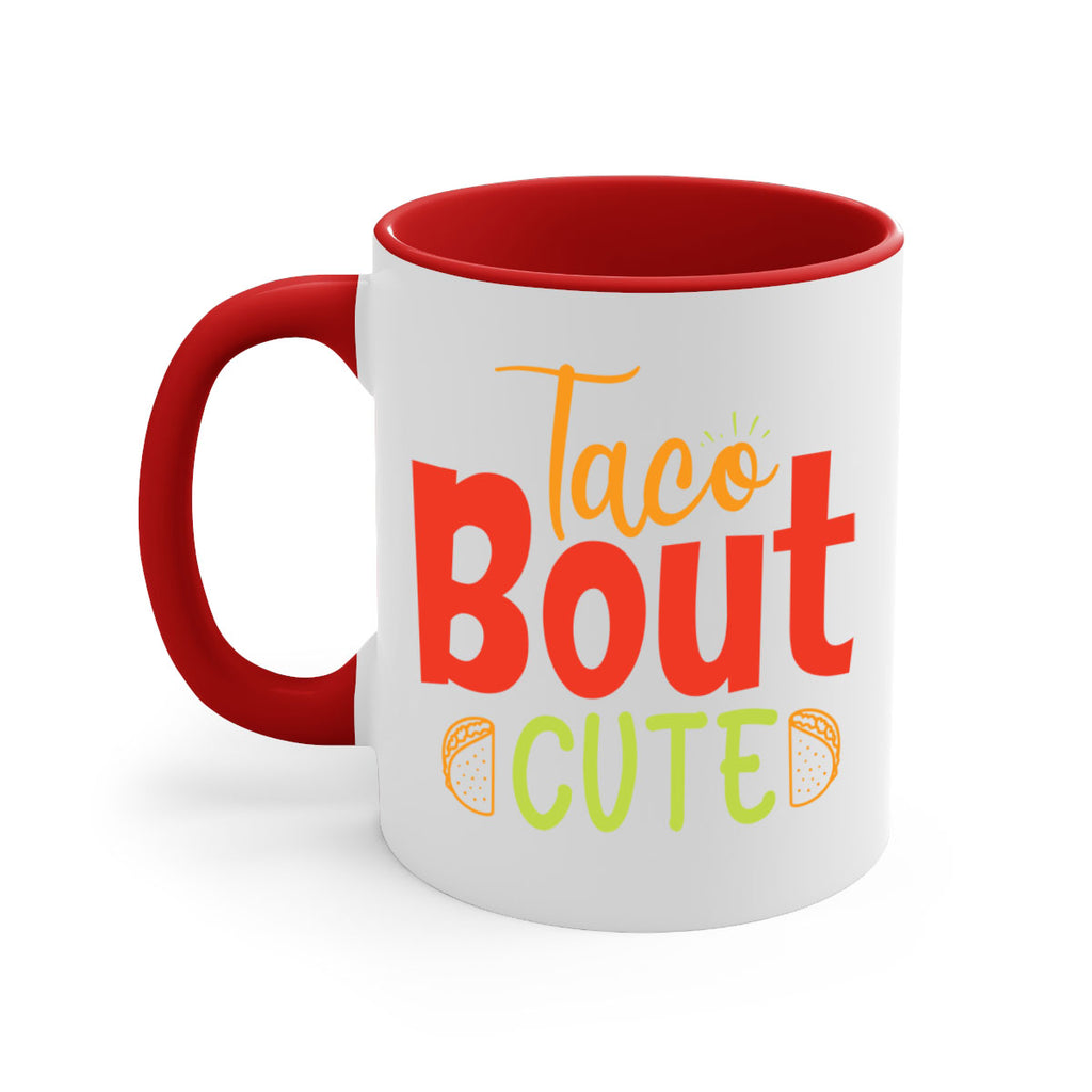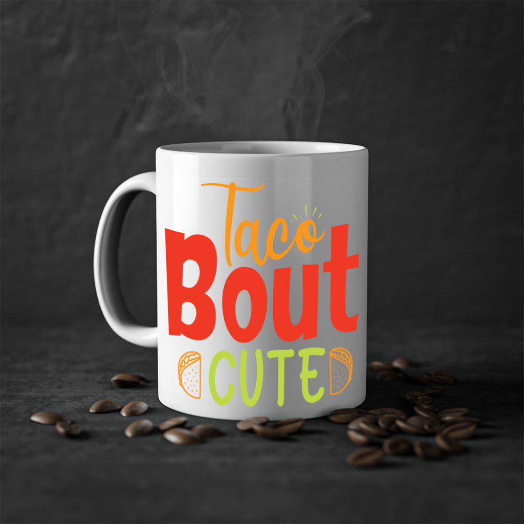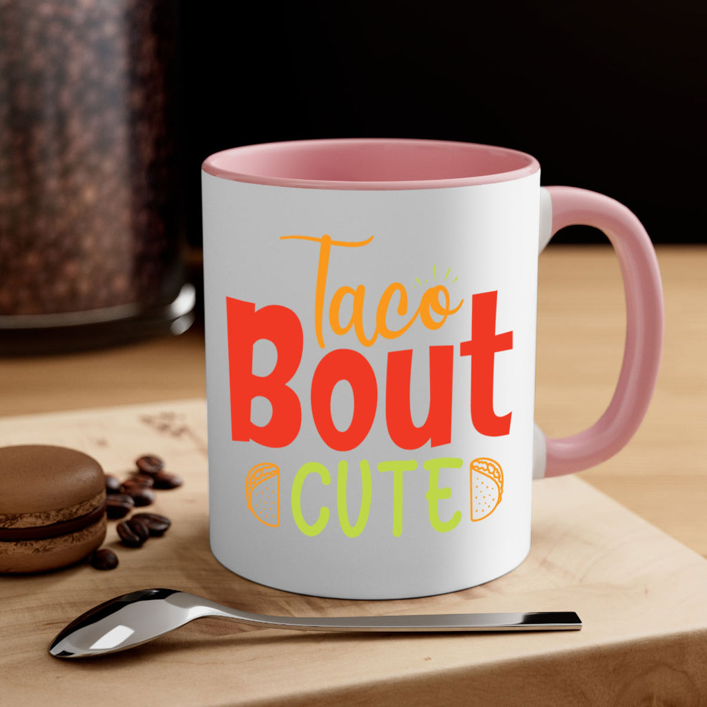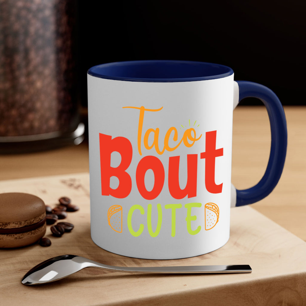 Enjoy the Taco Bout cute Style 198# Mug . Here to bring big gulps of coffee, Tea or any beverage and style, these two-tone coffee mugs help people around the world start the day just right. Choose between 5 different color options and 2 sizes to best complement the design. Each mug comes with a colored handle, a colored interior, and a classy, glossy finish so that your mugs become an instant favorite.