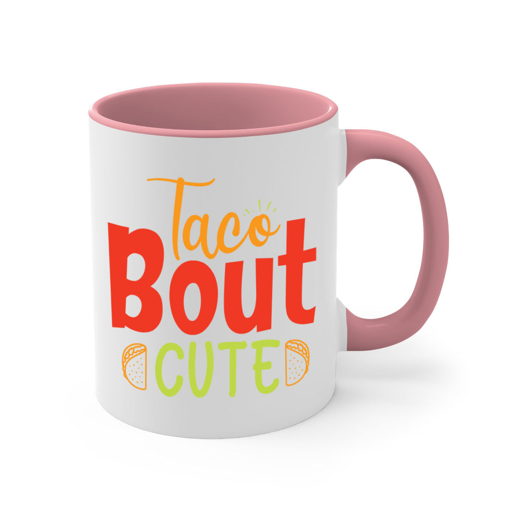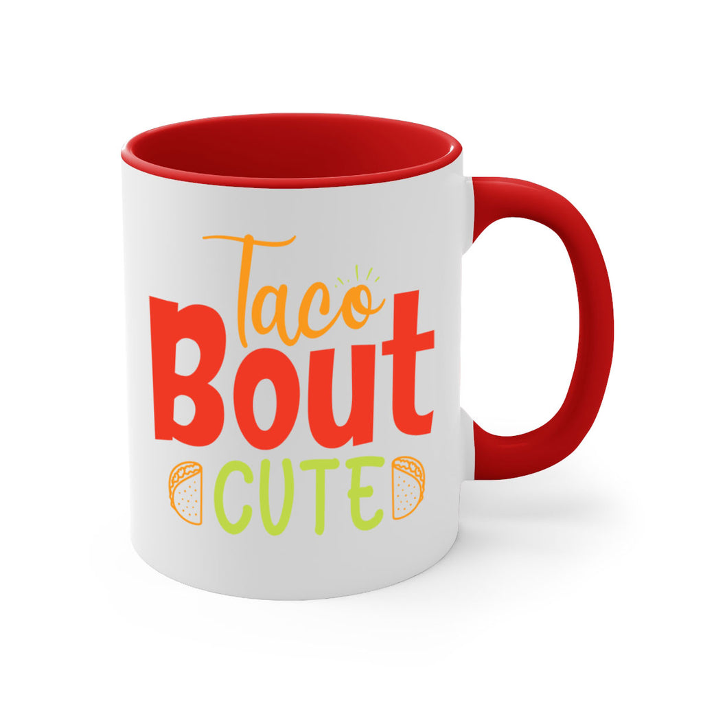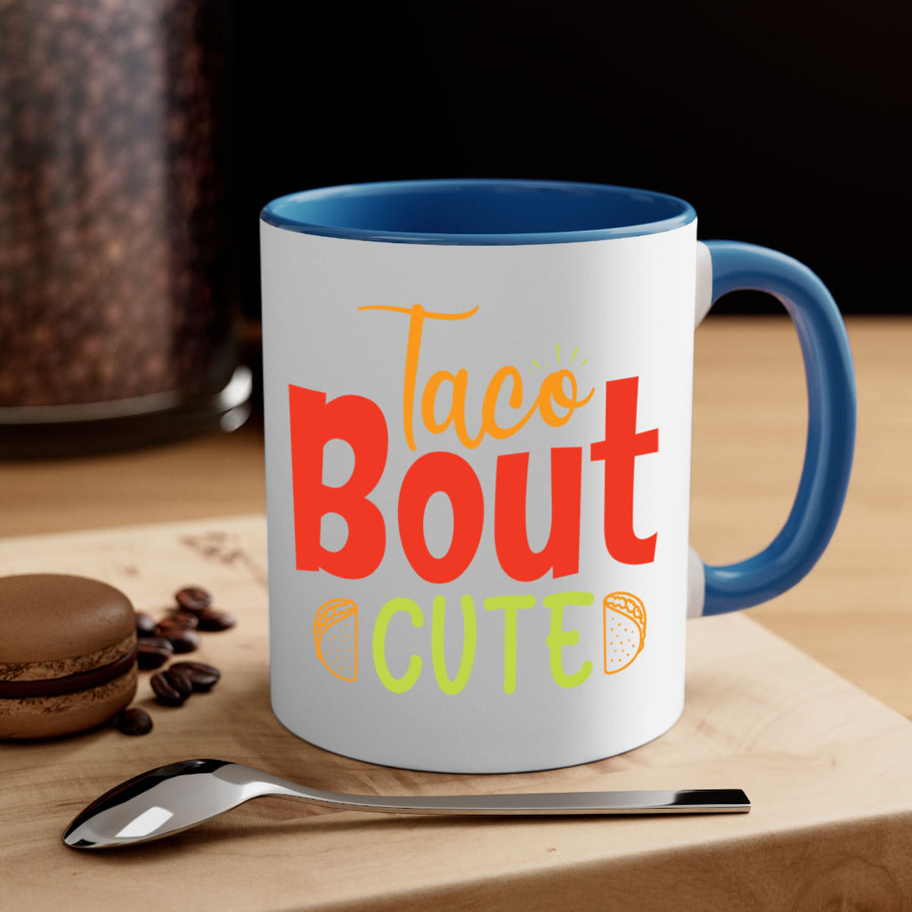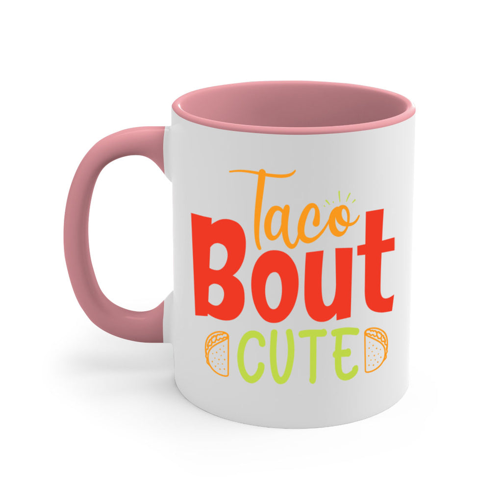 Enjoy the Taco Bout cute Style 198# Mug . Here to bring big gulps of coffee, Tea or any beverage and style, these two-tone coffee mugs help people around the world start the day just right. Choose between 5 different color options and 2 sizes to best complement the design. Each mug comes with a colored handle, a colored interior, and a classy, glossy finish so that your mugs become an instant favorite.