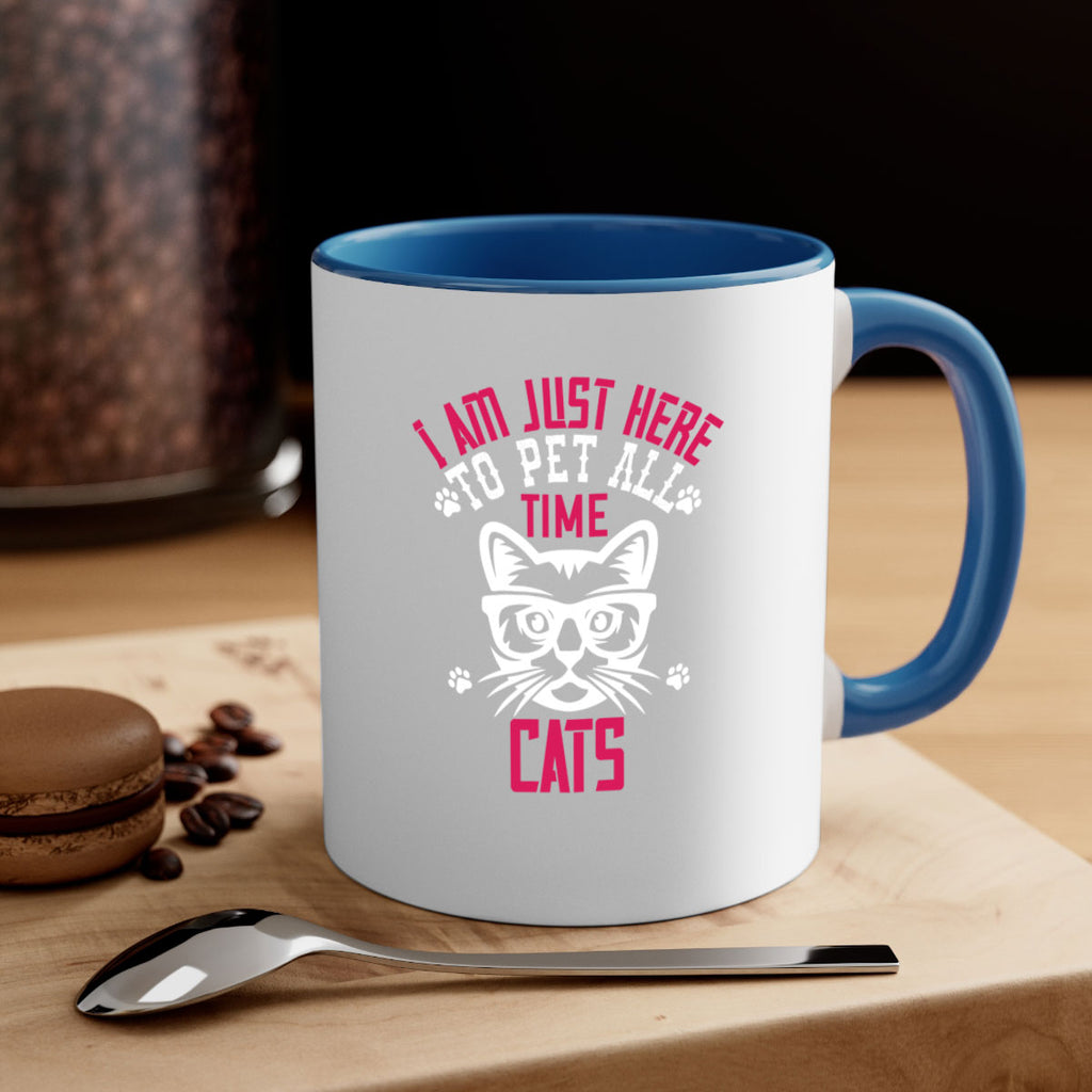 Enjoy the i am just here topet all time cats Style 52# Mug . Here to bring big gulps of coffee, Tea or any beverage and style, these two-tone coffee mugs help people around the world start the day just right. Choose between 5 different color options and 2 sizes to best complement the design. Each mug comes with a colored handle, a colored interior, and a classy, glossy finish so that your mugs become an instant favorite.