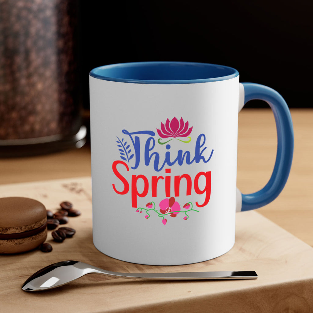 Enjoy the Think Spring 551# Mug . Here to bring big gulps of coffee, Tea or any beverage and style, these two-tone coffee mugs help people around the world start the day just right. Choose between 5 different color options and 2 sizes to best complement the design. Each mug comes with a colored handle, a colored interior, and a classy, glossy finish so that your mugs become an instant favorite.