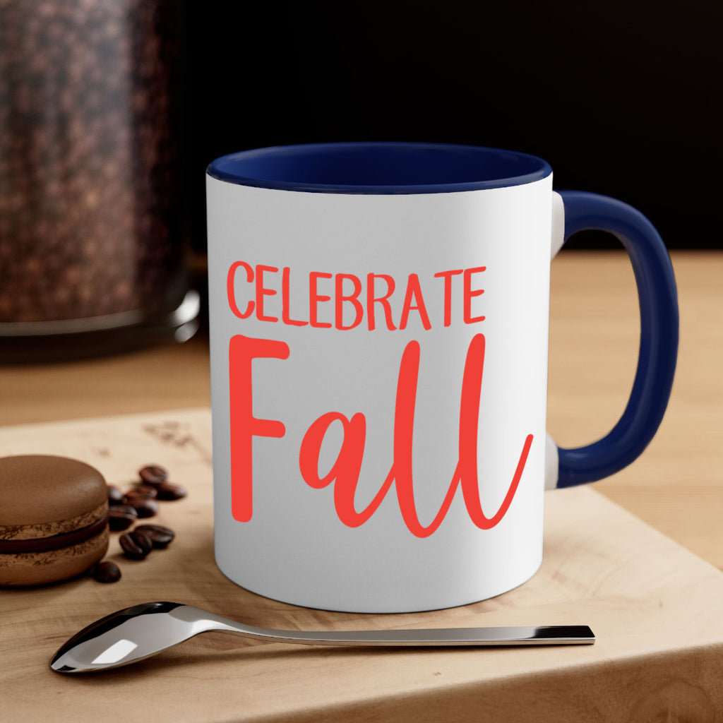 Enjoy the celebrate fall 57# Mug . Here to bring big gulps of coffee, Tea or any beverage and style, these two-tone coffee mugs help people around the world start the day just right. Choose between 5 different color options and 2 sizes to best complement the design. Each mug comes with a colored handle, a colored interior, and a classy, glossy finish so that your mugs become an instant favorite.