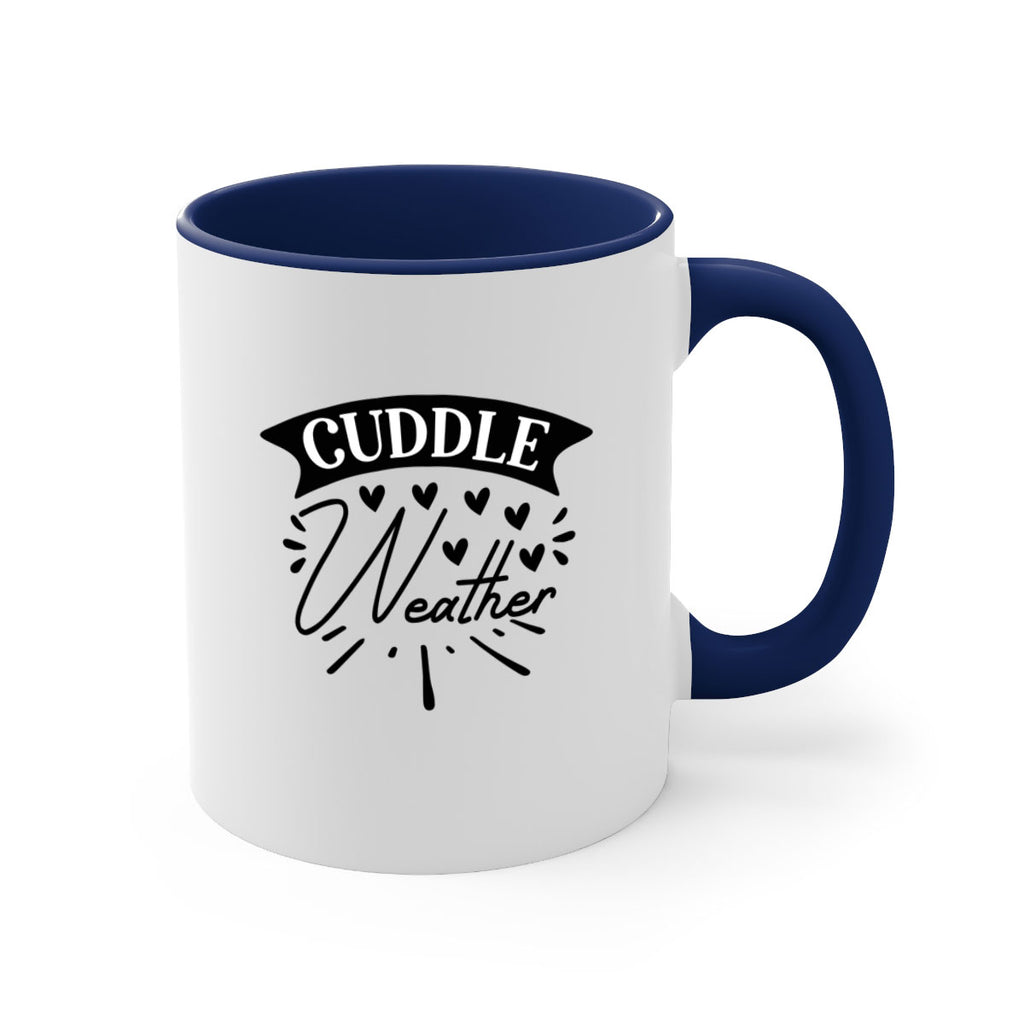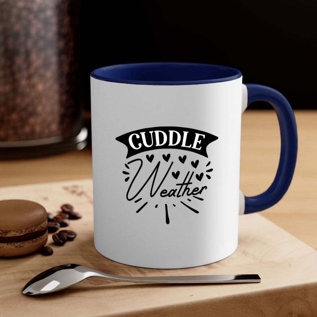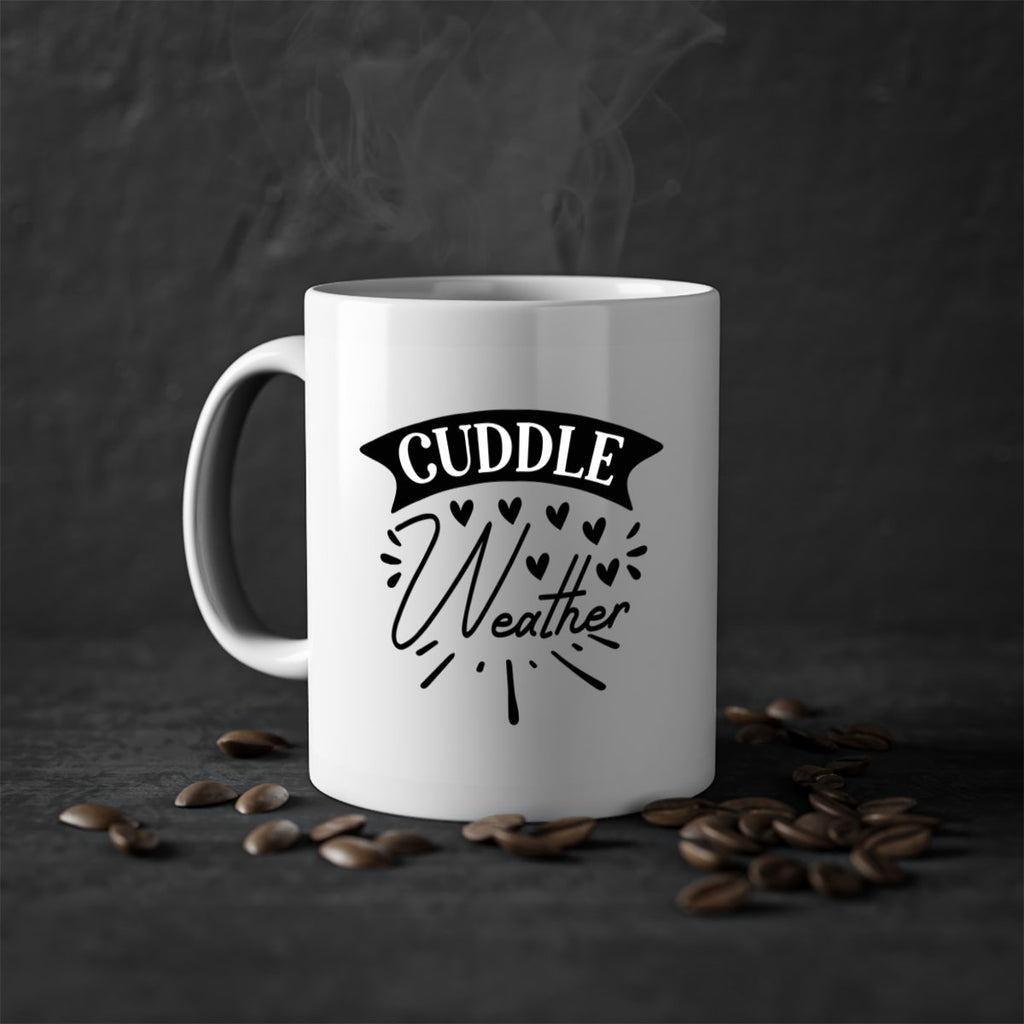 Enjoy the Cuddle Weather 84# Mug . Here to bring big gulps of coffee, Tea or any beverage and style, these two-tone coffee mugs help people around the world start the day just right. Choose between 5 different color options and 2 sizes to best complement the design. Each mug comes with a colored handle, a colored interior, and a classy, glossy finish so that your mugs become an instant favorite.