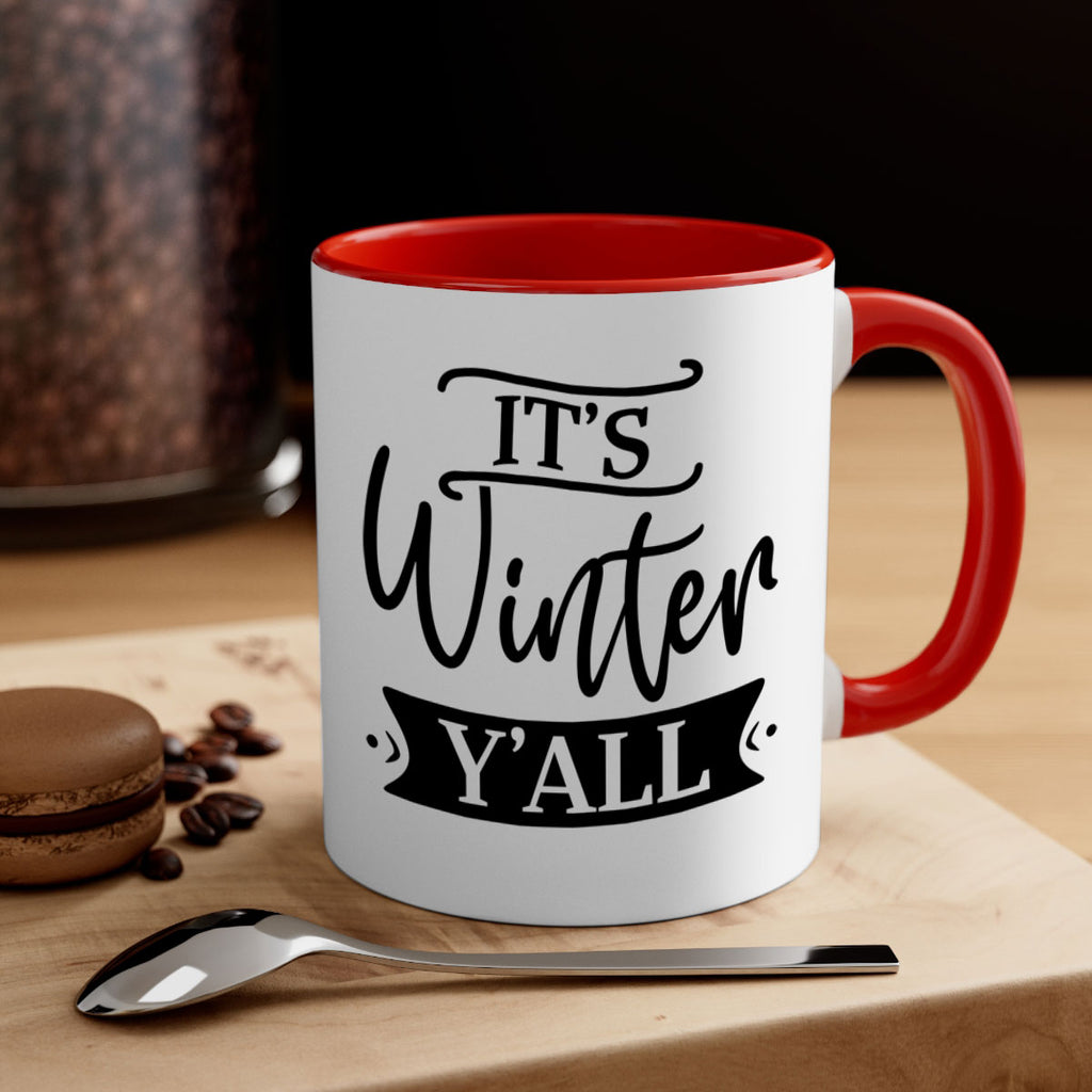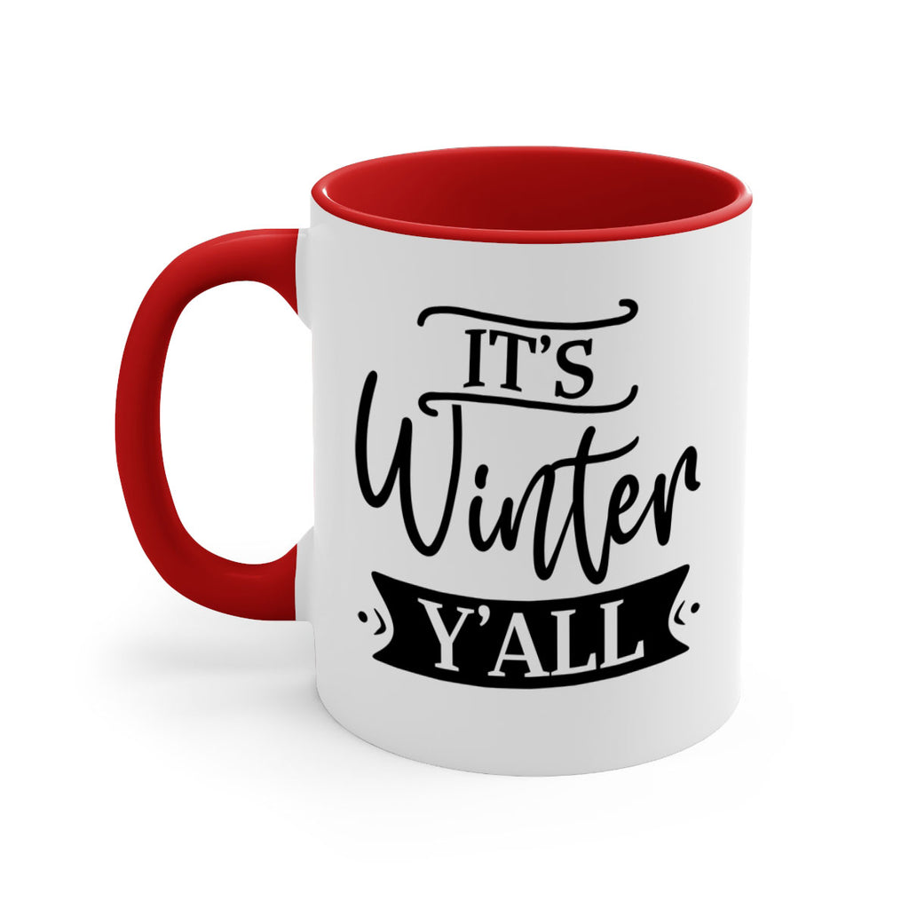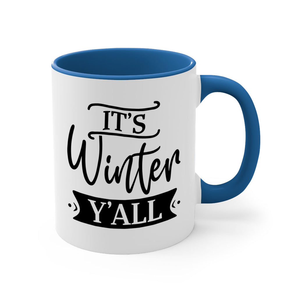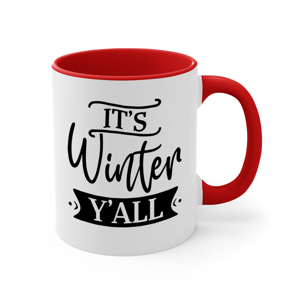 Enjoy the Its Winter Yall265# Mug . Here to bring big gulps of coffee, Tea or any beverage and style, these two-tone coffee mugs help people around the world start the day just right. Choose between 5 different color options and 2 sizes to best complement the design. Each mug comes with a colored handle, a colored interior, and a classy, glossy finish so that your mugs become an instant favorite.