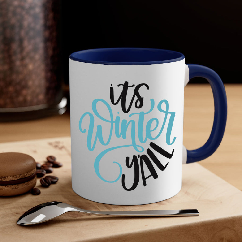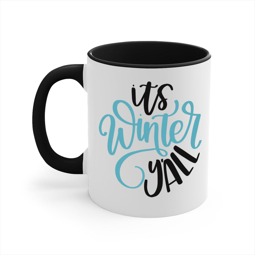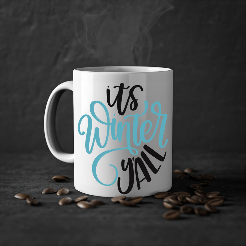 Enjoy the Its Winter YALL341# Mug . Here to bring big gulps of coffee, Tea or any beverage and style, these two-tone coffee mugs help people around the world start the day just right. Choose between 5 different color options and 2 sizes to best complement the design. Each mug comes with a colored handle, a colored interior, and a classy, glossy finish so that your mugs become an instant favorite.
