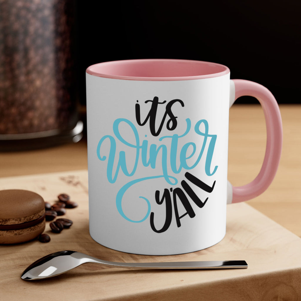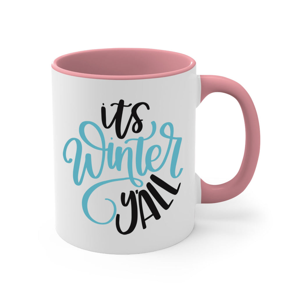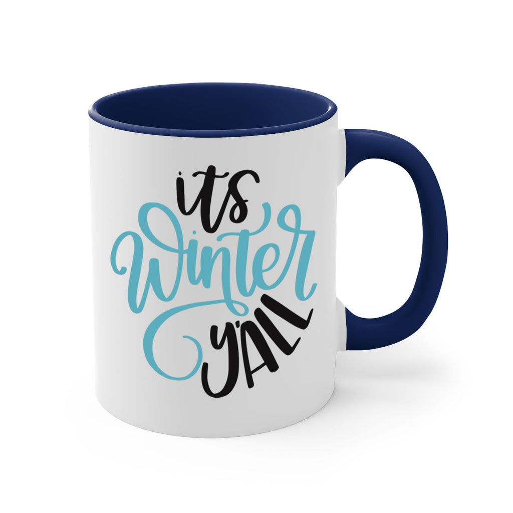 Enjoy the Its Winter YALL341# Mug . Here to bring big gulps of coffee, Tea or any beverage and style, these two-tone coffee mugs help people around the world start the day just right. Choose between 5 different color options and 2 sizes to best complement the design. Each mug comes with a colored handle, a colored interior, and a classy, glossy finish so that your mugs become an instant favorite.
