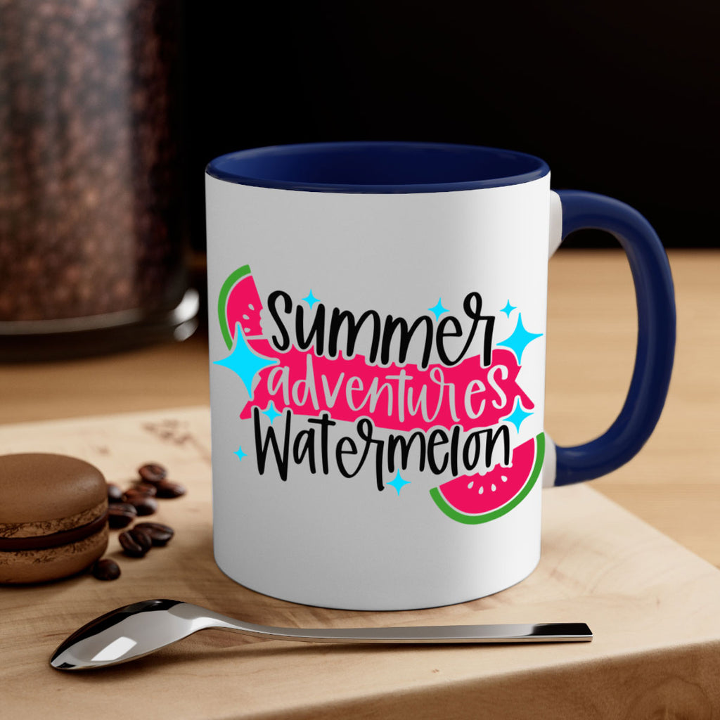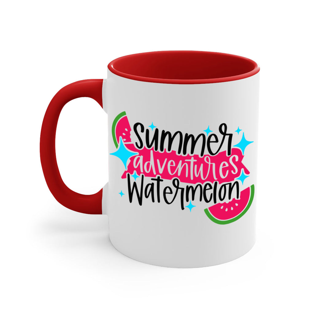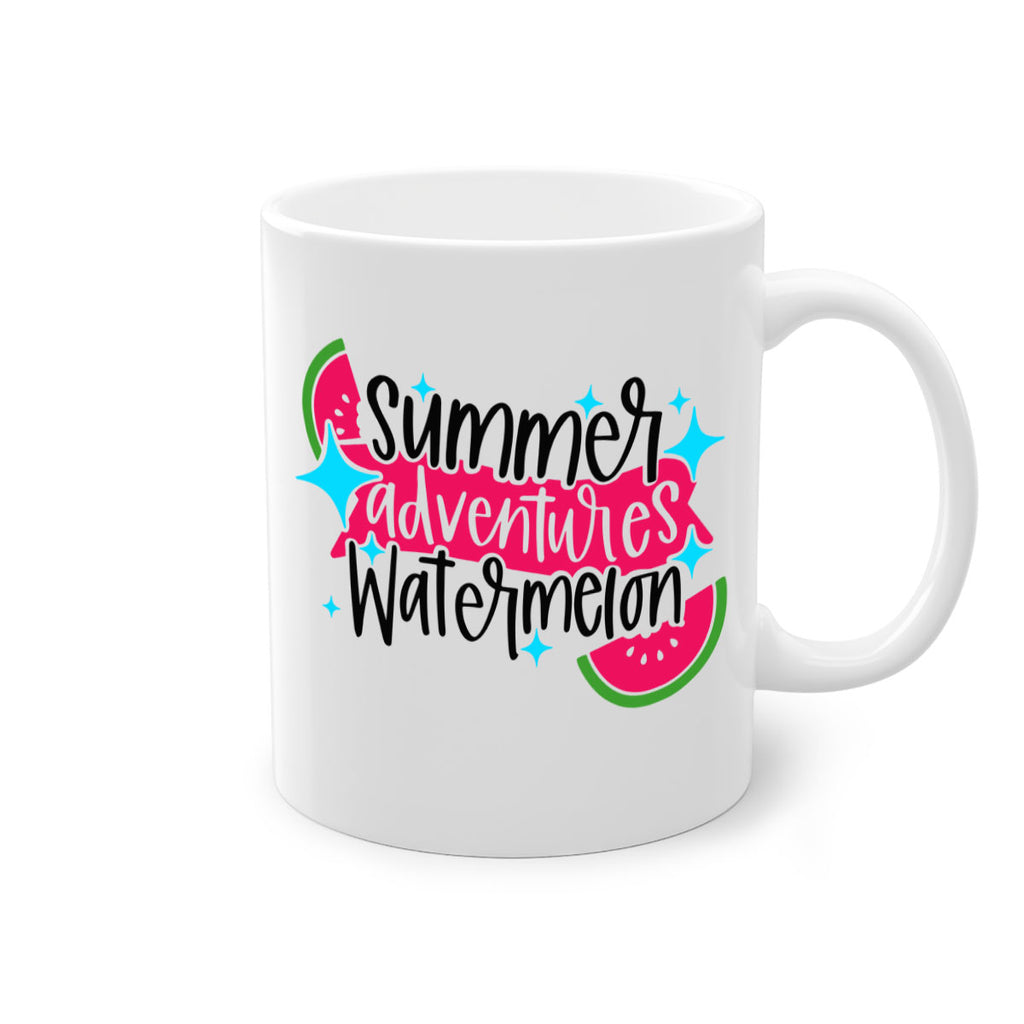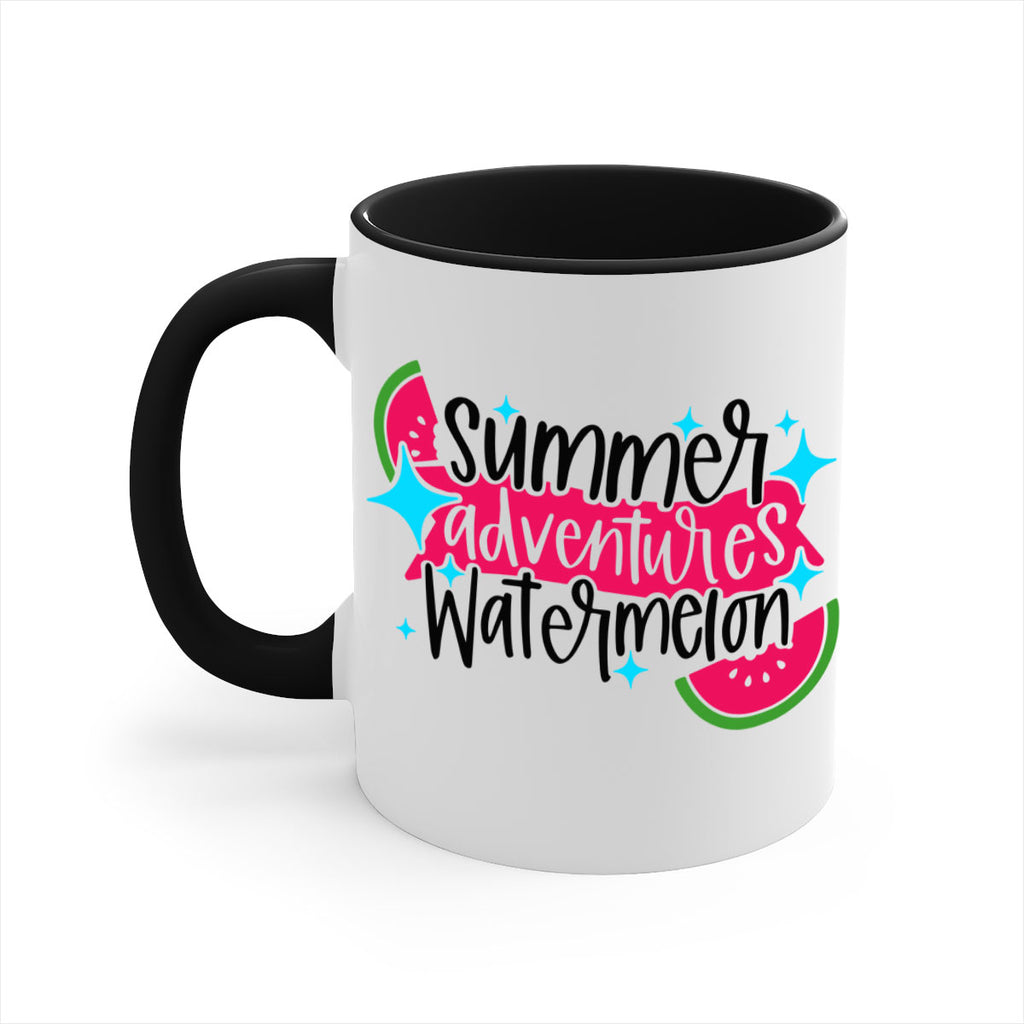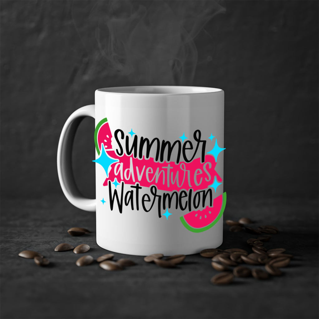 Enjoy the Summer Adventures Watermelon Style 23# Mug . Here to bring big gulps of coffee, Tea or any beverage and style, these two-tone coffee mugs help people around the world start the day just right. Choose between 5 different color options and 2 sizes to best complement the design. Each mug comes with a colored handle, a colored interior, and a classy, glossy finish so that your mugs become an instant favorite.