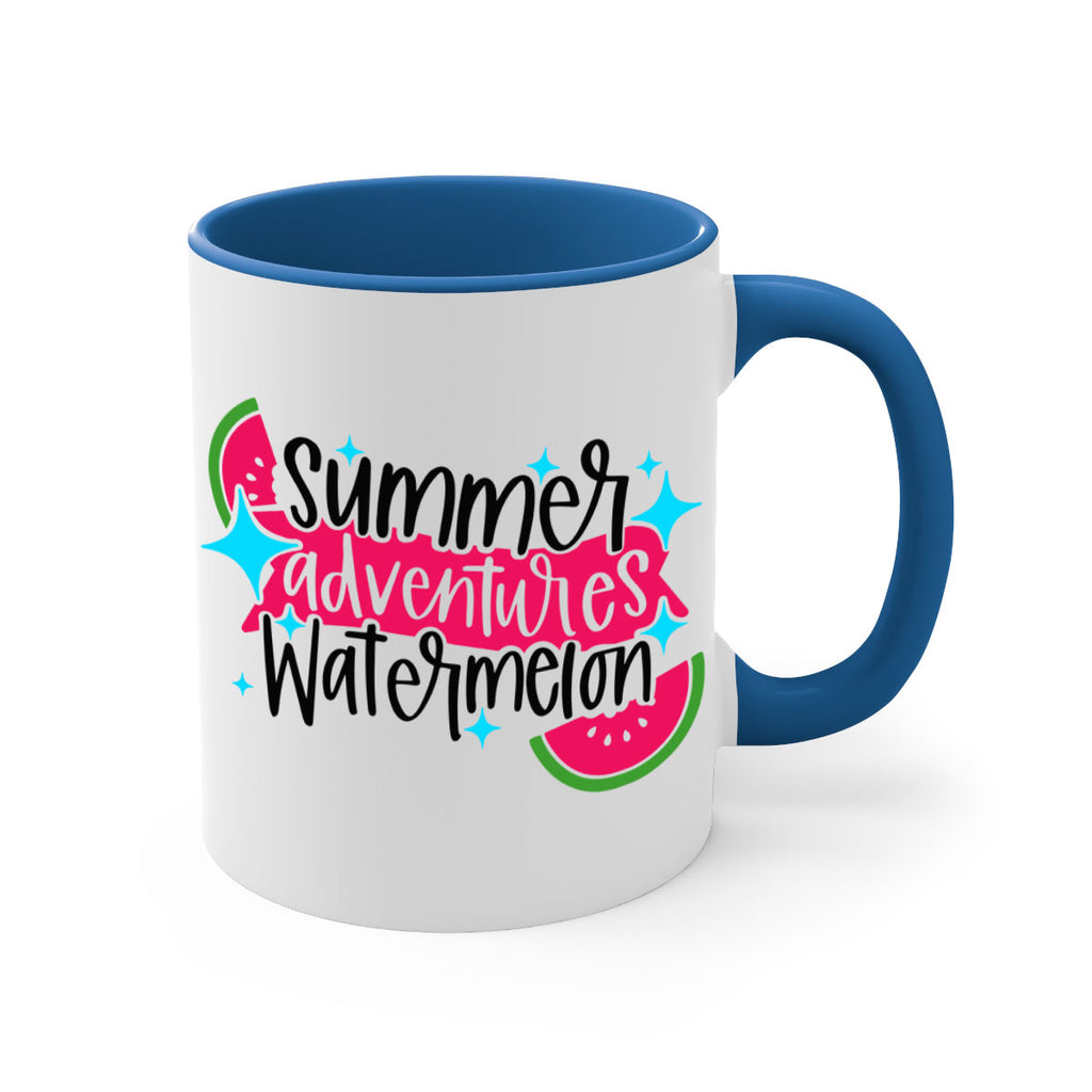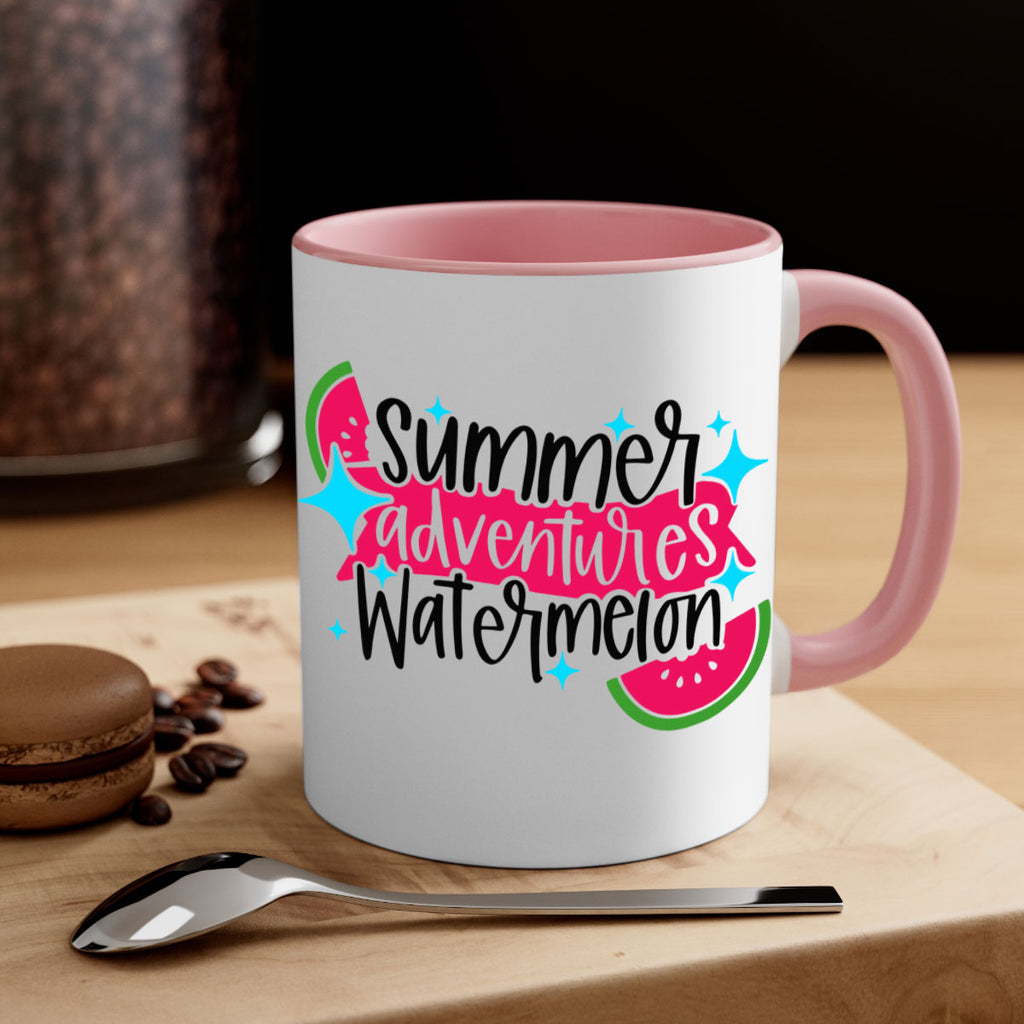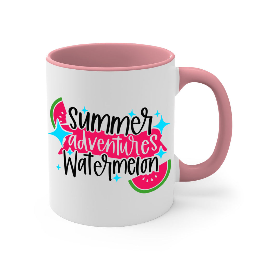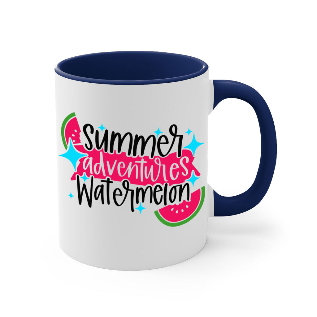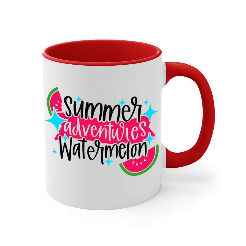Enjoy the Summer Adventures Watermelon Style 23# Mug . Here to bring big gulps of coffee, Tea or any beverage and style, these two-tone coffee mugs help people around the world start the day just right. Choose between 5 different color options and 2 sizes to best complement the design. Each mug comes with a colored handle, a colored interior, and a classy, glossy finish so that your mugs become an instant favorite.