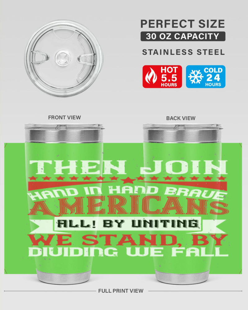 Then join hand in hand brave Americans all By uniting we stand by dividing we fall Style 193#- Fourt Of July- Tumbler