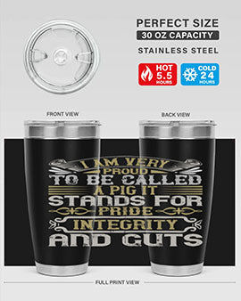 I am very proud to be called a pig It stands for pride integrity and guts Style 77#- pig- Tumbler
