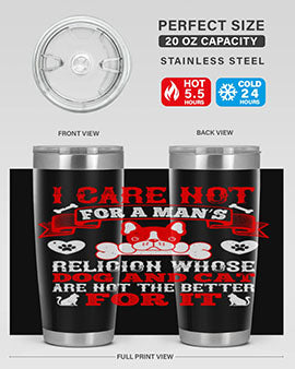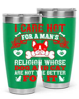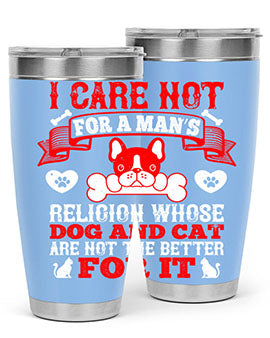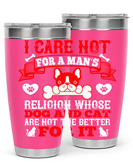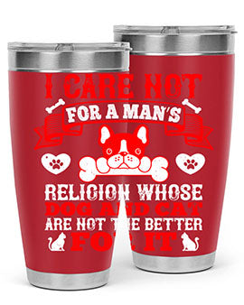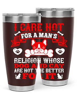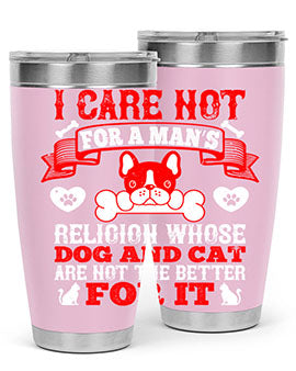 I care not for a man’s religion whose dog and cat are not the better for it Style 195#- dog- Tumbler