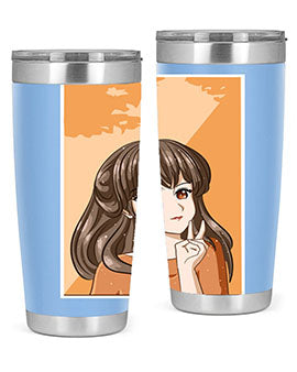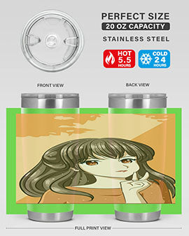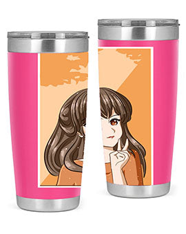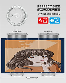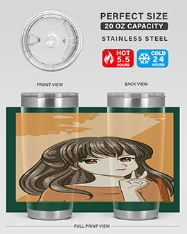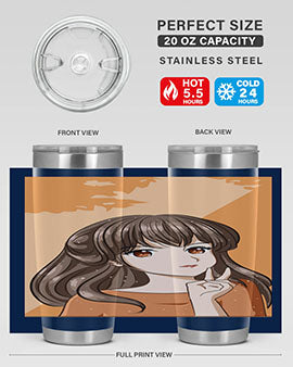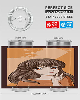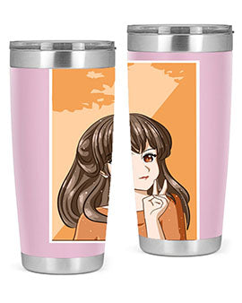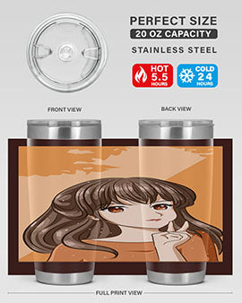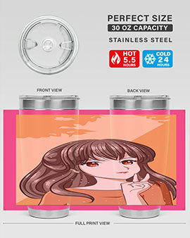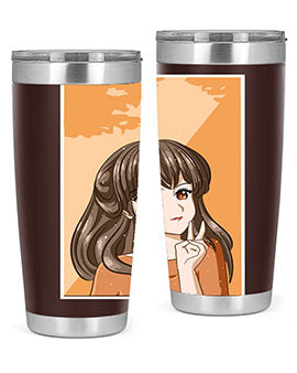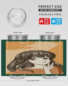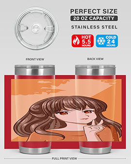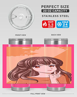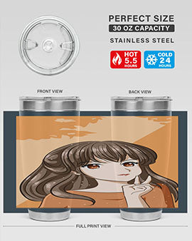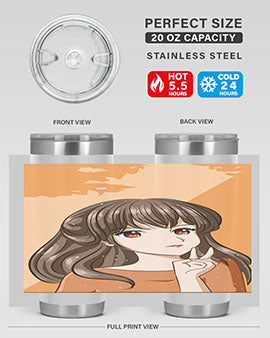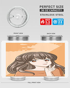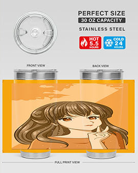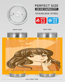 Beautiful and pretty girl long hair with orange background 100#- anime- Tumbler