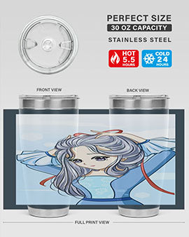 Beautiful princess silver hair with blue dress 120#- anime- Tumbler