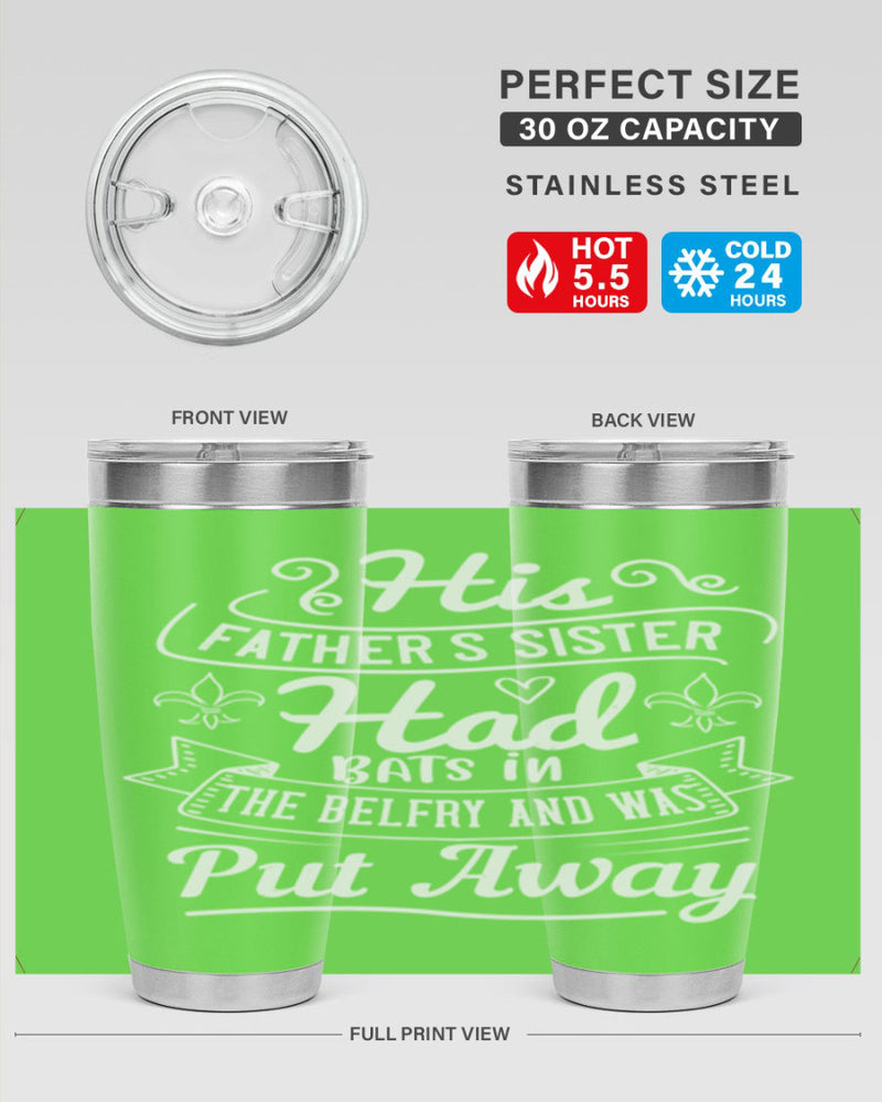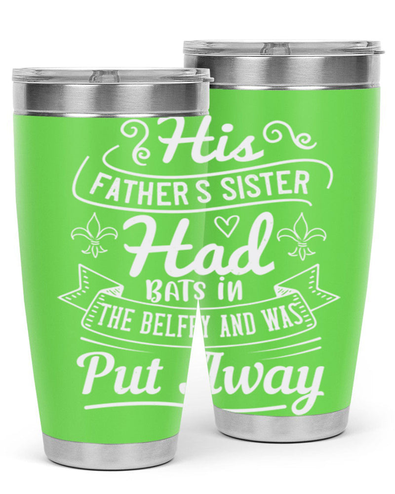 His fathers sister had bats in the belfry and was put away Style 55#- aunt- Tumbler