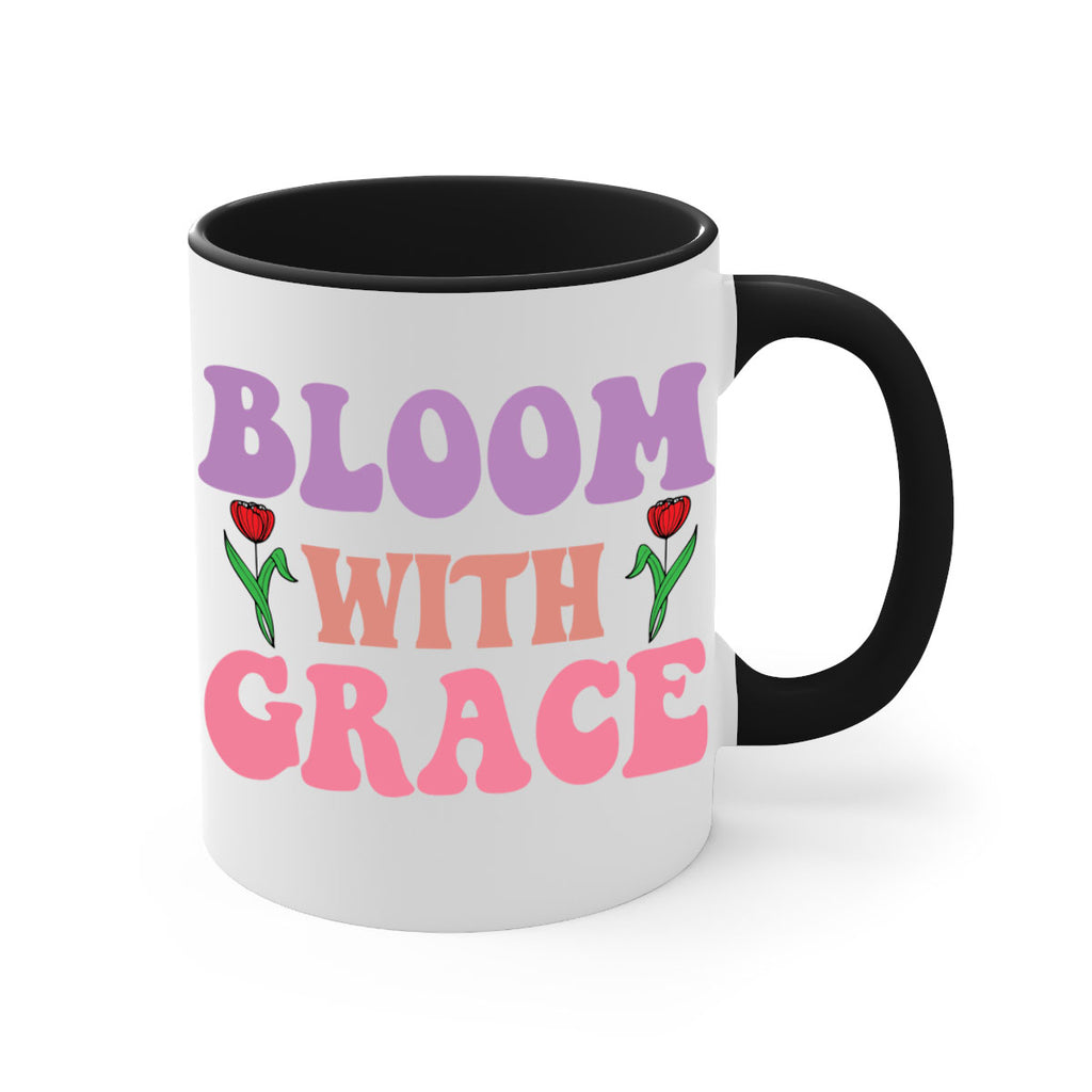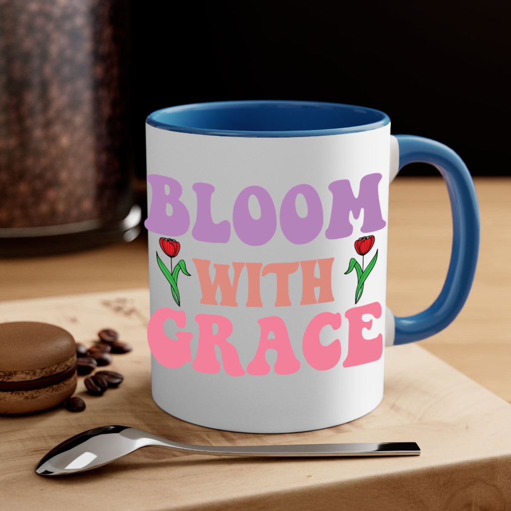 Enjoy the Bloom with Grace 90# Mug . Here to bring big gulps of coffee, Tea or any beverage and style, these two-tone coffee mugs help people around the world start the day just right. Choose between 5 different color options and 2 sizes to best complement the design. Each mug comes with a colored handle, a colored interior, and a classy, glossy finish so that your mugs become an instant favorite.